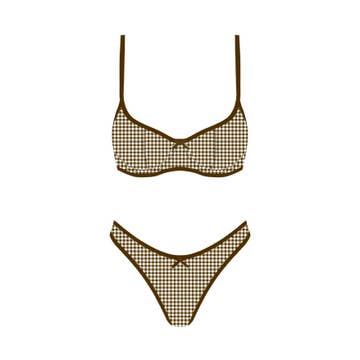 SKU: BIKINI-TOP-S-BROWN-POLKA Made in China Fabric: 75% Polyester, 25% Spandex. Weight: 113.4 g (4 oz)