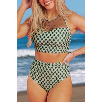 The Hammies Bikini is based on one of the original bikini styles from the 1960s. It combines elements from a couple of our favorite vintage finds. The body and rick rack are made with 15% stretch to accommodate bodies of all shapes and sizes. The white contrasting trim match the details of our Cabana Set and really complete that mid-century look. Unlike our original Bikini, the Polka Dot Bikini is available as separates (top and bottom) and it's reversible! The Polka Dot Bikini can be worn with polka dot print or solid color facing out, or mix-and-matched. The cut and fit of the Polka Dot Bikini are the same as the original Bikini. The Polka Dot Bikini is our latest and greatest of many pieces that celebrate the exuberant and underappreciated styles from 1950-60s swim style. This is your grandma's bikini! * 🌱 85% polyester, 15% elastic * 🤸♀️ Sporty fit, leisurely look * 💎 Reversible (polka dot print on one side, solid color on the other), contrast rick rack * ✨ 1960s-inspired cut The Inspiration The History The history of the swimsuit is a fascinating tale of American and European prudishness of dress starting in the early 20th century. Prior to the 1940s, most women swam in full garb, including dresses, stalkings, boots, and a weight belt to keep them from floating. Men's swimwear was much less oppressive in comparison (essentially a wool onesie until barechestedness became acceptable in the 1930s). The bikini took the fashion stage in the 1930s but didn't gain public acceptance until the 1960s. For the next 40 years, the swimsuit, and the bikini specifically, pushed the limits of American fashion and modesty more than any other wardrobe item. If you want to learn more, we recommend Making Waves: Swimsuits and the Undressing of America by Lena Lenček and Gideon Bosker.