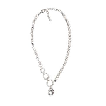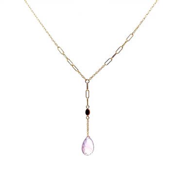 14k gold plated 3.4 mm Lea elongated lariat necklace with fixed 10 mm Colette freshwater pearl, removable hand-carved mother of pearl Fortuna charm and adjustable lobster clasp closure. Fully adjustable 19" chain. PRODUCT NOTE: Handle with care—Carved stone is delicate by nature. May vary in texture, color, shape and size. These subtle differences make each piece uniquely yours. Fortuna measures approximately: 35 mm x 9 mm x 5 mm