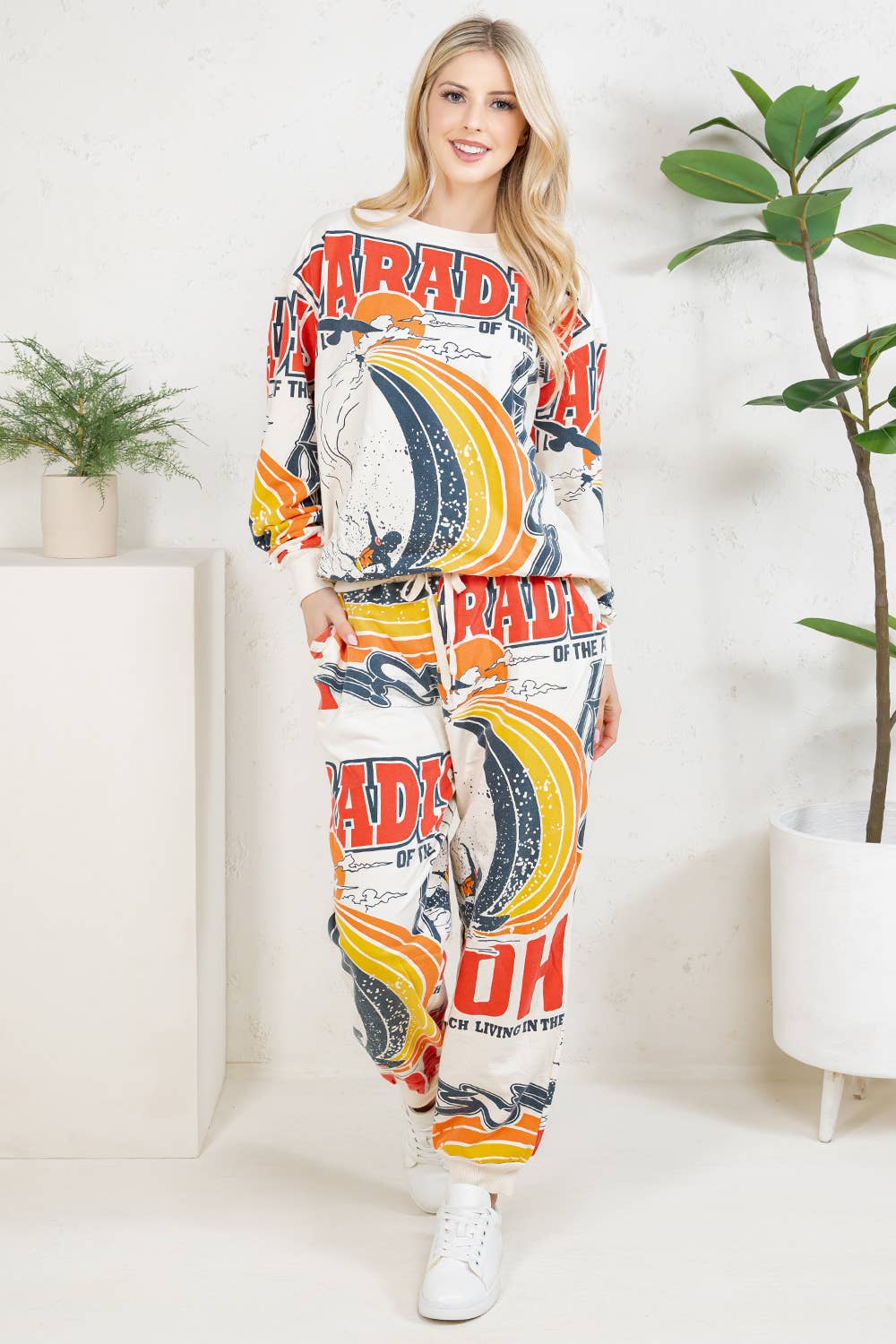 -Wild west soft lounge wear set -Matching set -Top and bottom set -Sleep lounge wear -Soft fabric, casual style, every day wear. -Model size: Small ( 5'10" 31- 23- 34 ) -Made in USA