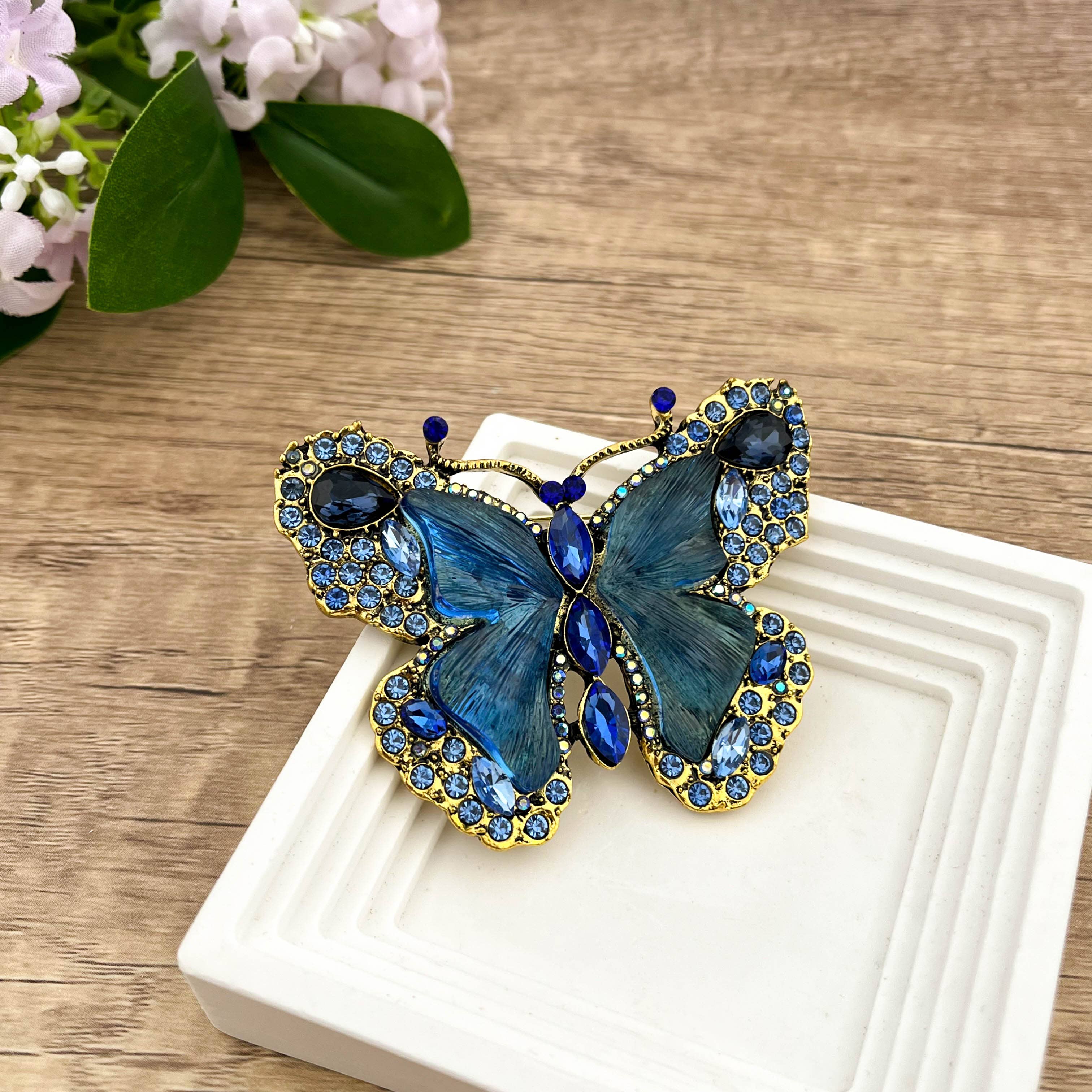 • Size : 2.5" X 1.25" • Magnetic Closure • No Pinhole Damage • Lead and Nickel Compliant • Elegant butterfly brooch with intricate enamel detailing, crafted for a timeless and graceful accessory. Perfect for enhancing outfits, scarves, and bags with a touch of sophistication. Ideal for gifting or adding a delicate statement piece to any jewelry collection.