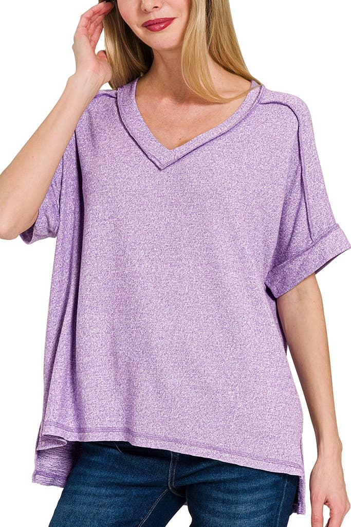 Ribbed Brushed Hacci Melange Henley Sweater - Melange Colors - Side Slits - Exposed Seam Total Body Length: 27"(front), Chest: 45" Approx. - Measured From S/m * Color May Vary Slightly Due To Monitor Resolution Fabric 82%polyester, 15%rayon, 3%spandex Womens Clothing, Apparel, Western Apparel, Western Wear