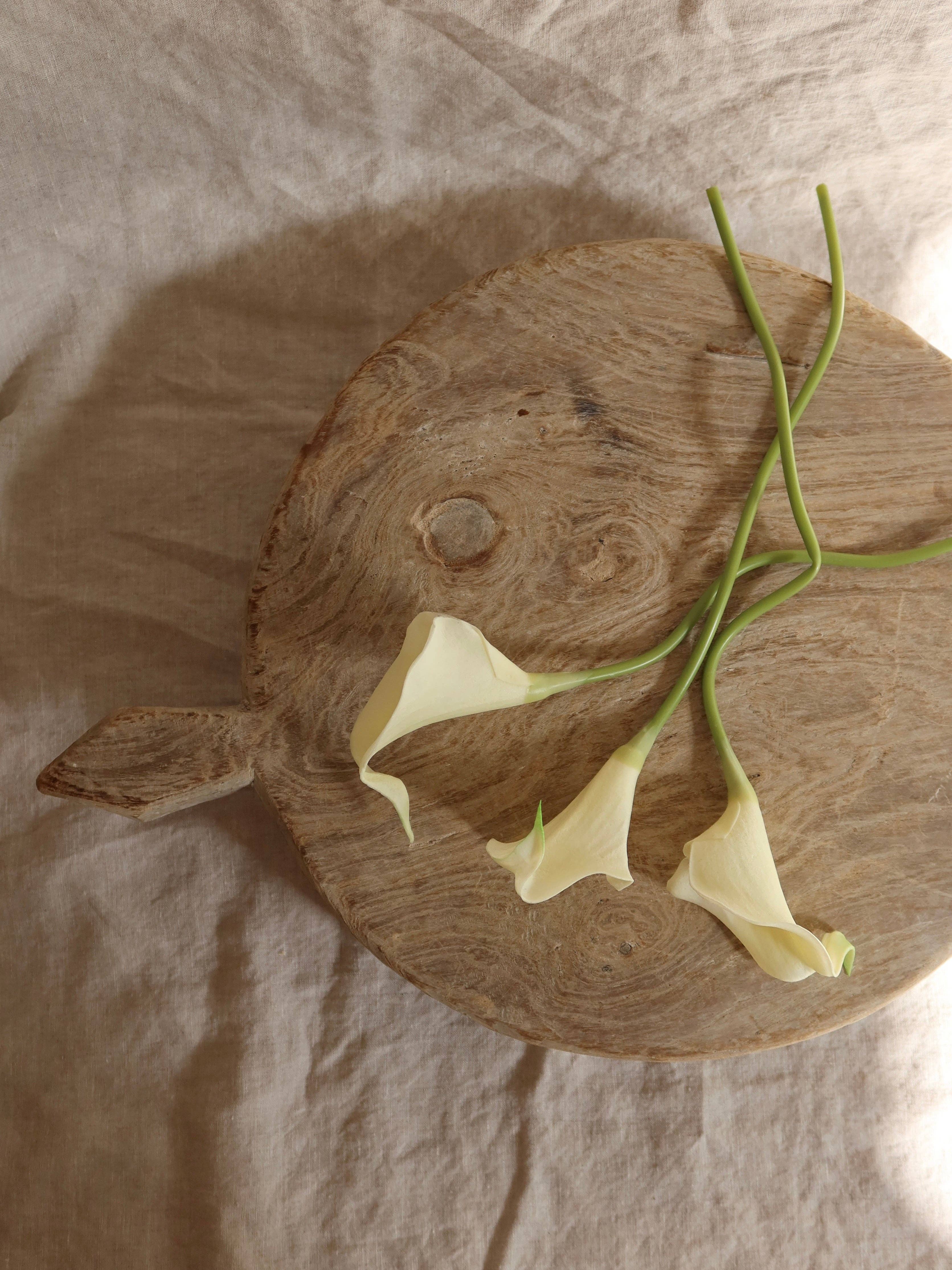Hand-carved, honed marble parat from India. This handled dish is an organic one-of-a-kind. Its large round shape and size is perfect as a centerpiece on its own, or underneath a large vessel. Sourced from India Dimensions: 18” diameter x 2.5" H All stone and marble bowls are final sale.
