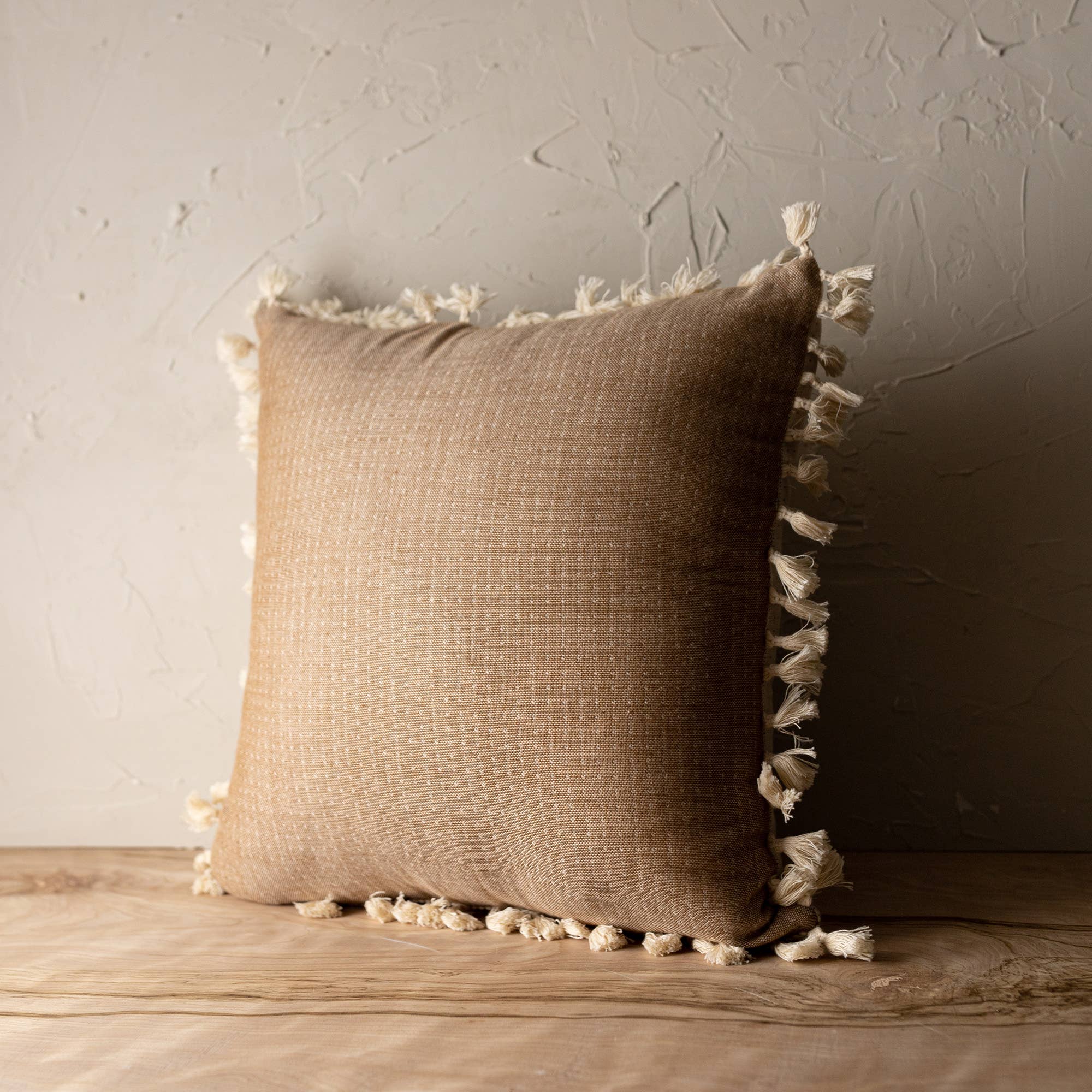 Fabric for our woven pillows are created with timeless weaving traditions on pedal looms in rural communities across Southern Mexico. Naturally dyed, 100% cotton with 50% hand spun thread. Sewn in Los Angeles and backed with 100% linen. Designed and produced to last a lifetime. DETAILS: 100% handspun thread 100% linen backed Invisible zipper