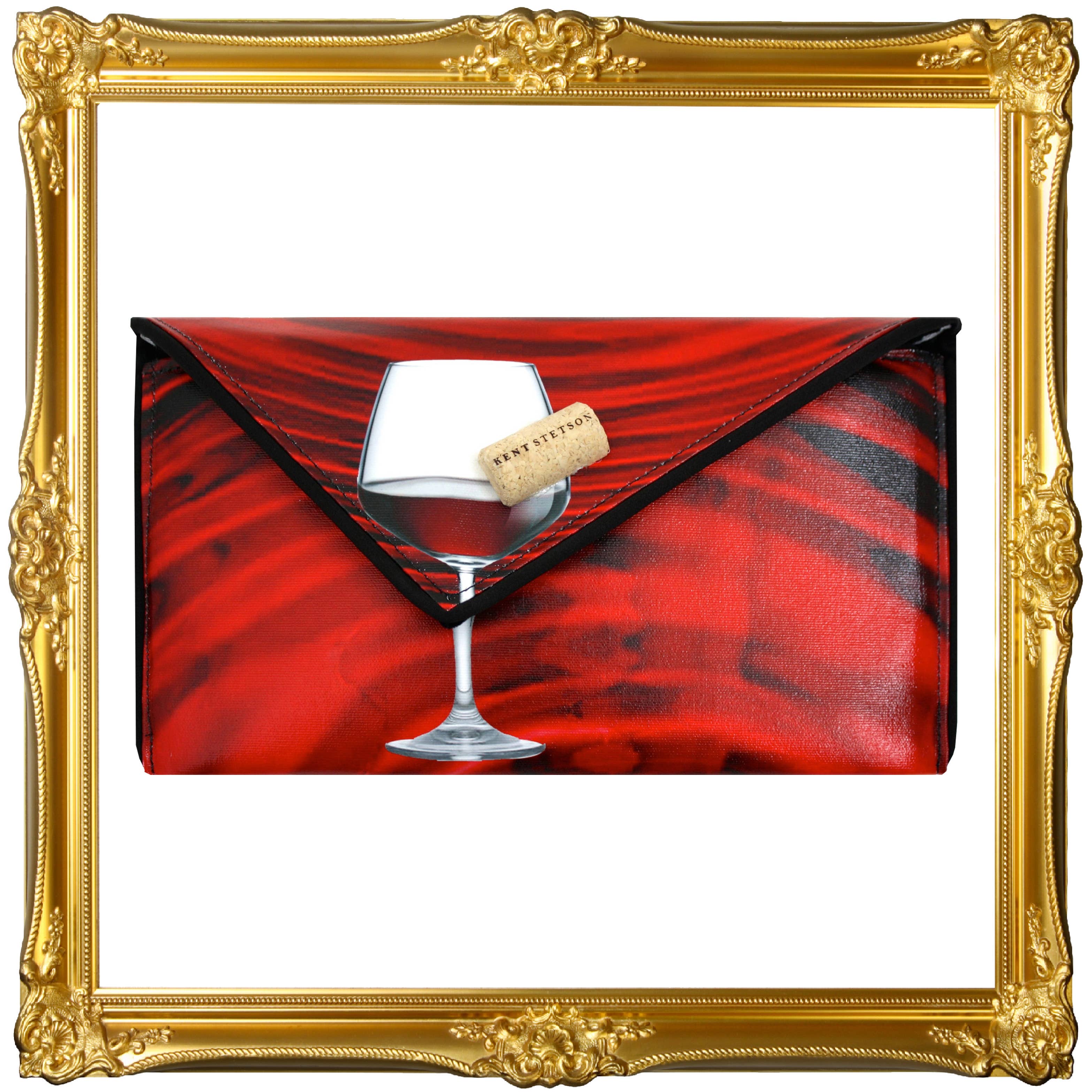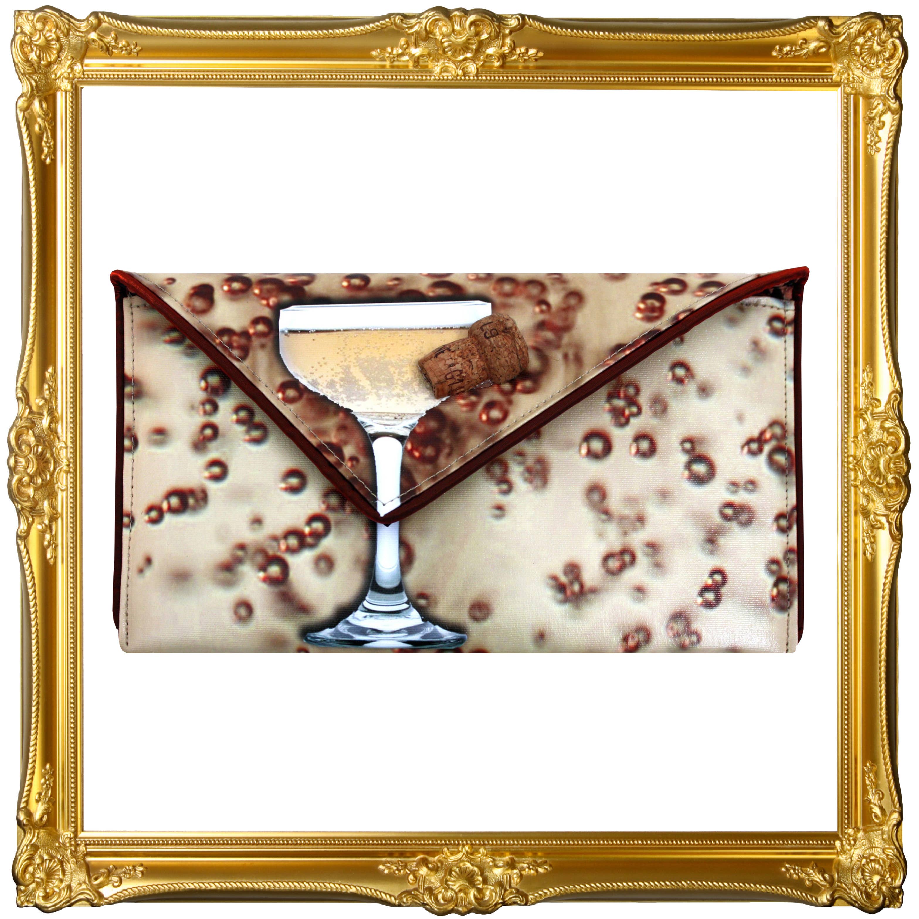 Cheers! Be the toast of the room when you roll in with this iconic design. Finished with a 3D olive clasp accent. Cruelty-free, made from luxury quality coated canvas. All bags come with a removable cross-body chain, logo dust bag, clear vinyl inner pocket, and are individually signed. Inside fabric may differ from what is pictured. Price includes shipping. * Material: Coated Canvas * Dimensions: 12 x 7 x 1 * Proudly handmade in the USA. * Individually signed by the Artist.