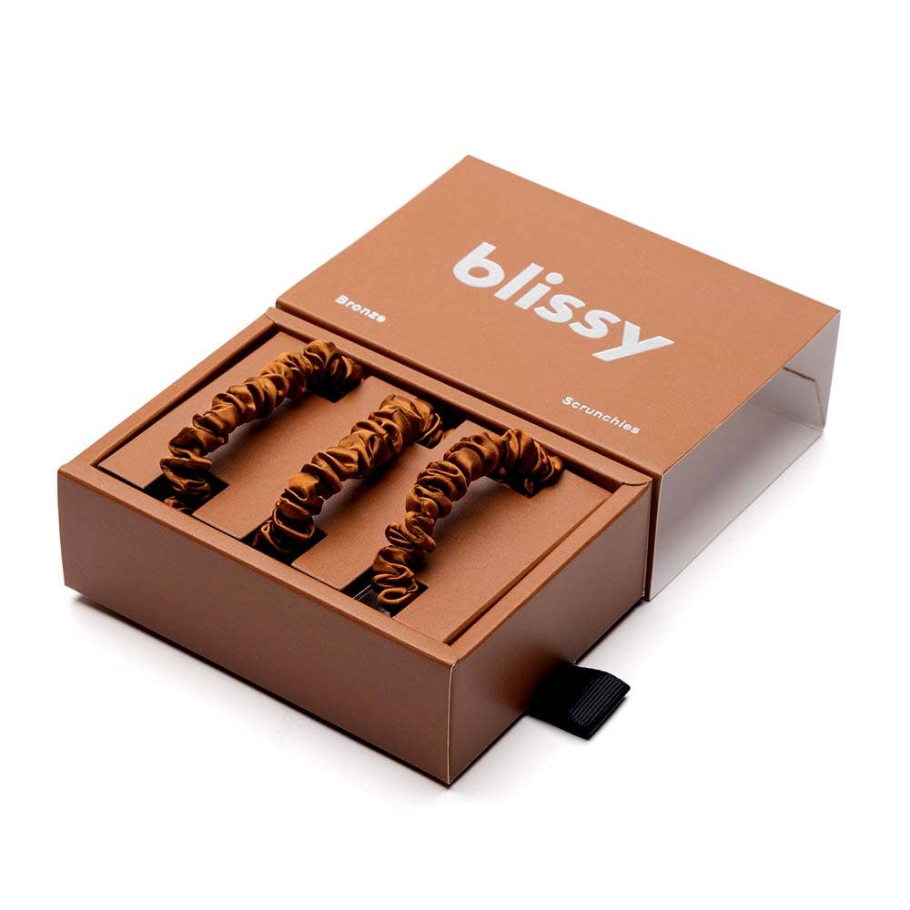 Blissy Orchid Silk Skinny Scrunchies are made from the same high quality pure mulberry silk as our popular pillowcases. Perfect for your hair, they come in a 3-pack No frizz, no tugging, no damage.....just pure silky smoothness.