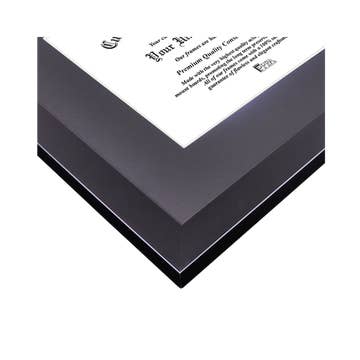 Elegant. Modern. The Renaissance picture frame is constructed with a solid wood core and a polished, composite wrap. This beautiful frame features a scalloped profile with a delicate floral pattern. Juxtaposed with a high gloss black finish, the Renaissance combines the ornate beauty of French Country with modern refinement. Elevate your print display with a Smooth White mat. The Obsidian Renaissance makes an eye-catching centerpiece. The frame is designed to fit a 11x14 inch image, photo, print, or artwork. The viewable area (front view) is 10.5x13.5. The interior dimensions may vary by 1/16" to allow for ease of use. The frame is fully assembled with washed glass, black chipboard backing, and (2) attached sawtooth hangers for both vertical and horizontal wall hanging. Pricing includes fully assembled frame, bulk packed for shipment. Frames are not individually boxed, or in retail packaging. Image insert is a sample only.