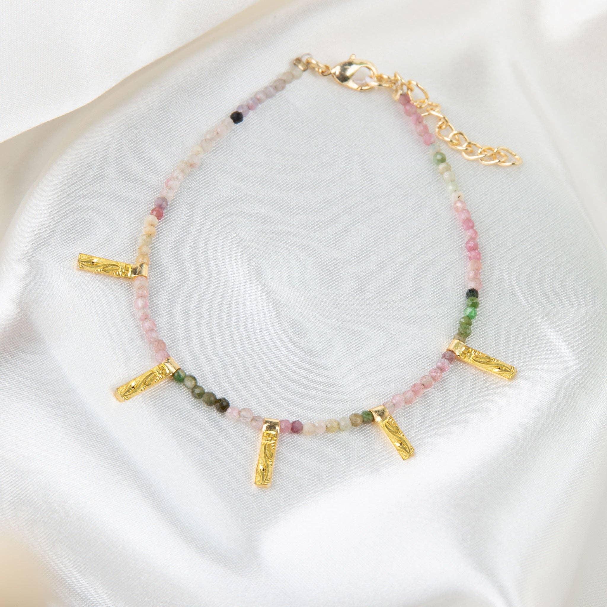 18k Gold Filled PaperClip Pink Beads Figa Hand Charm Bracelet