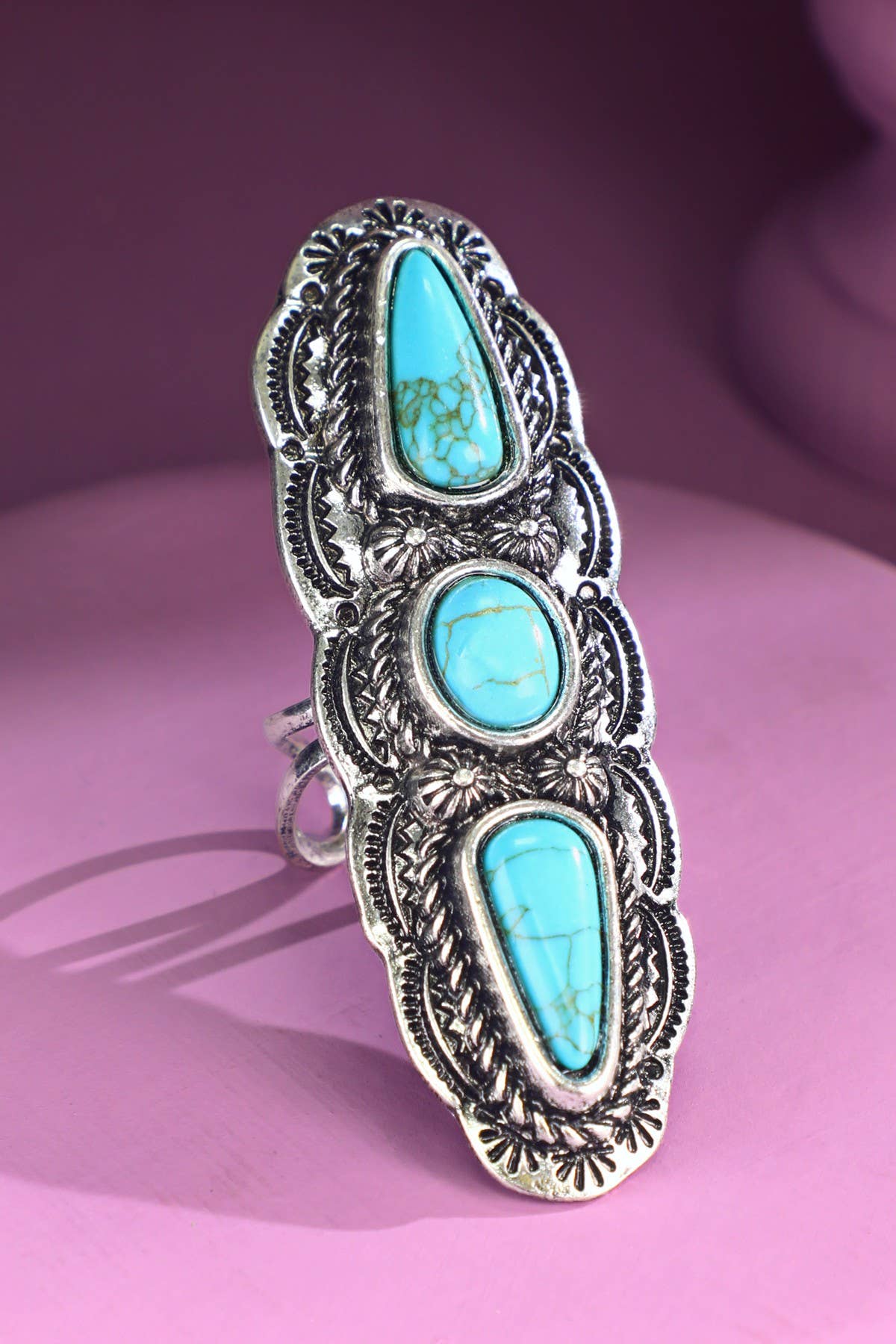 Rare and distinctively veined turquoise from Nevada's historic number 8 mine, handcrafted wide band yet comfortable fit, this stunning sterling silver ring is a treasure for now and generations to come. Each piece is unique in its own color and matrix. The turquoise from the Number 8 mine is considered some of the finest ever found and is highly valued by collectors because the mine was closed in 1976, once the stockpile is depleted, it will never be available again. High quality 925 sterling silver Turquoise, 17.4 total carat weight Each stone is unique in its color and matrix Ring face: 24 x 19mm Band width: 8mm Size: 6. 8. Stamped SJ and 925
