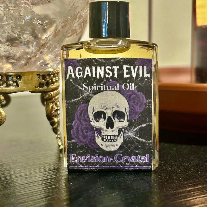 Against Evil is a potent protection candle that wards off any type of negativity or evil energy! One of our most powerful candles, this is a perfect choice if you’re facing malignant negativity from others or outside spiritual forces. It is adorned with powerful skull imagery and a custom-written affirmation on the back. This candle is topped with Black Snake Root and Red Pepper Flakes. Two ingredients that have been long used in the magical community for warding off negative energy. ★ Scent notes- Egyptian musk, Egyptian Sandalwood, black amber. ____________ All products are made right here at Envision Crystal Made in the USA 🇺🇸 All Envision Crystal candles have a high-quality soft wax blend that burns cleanly. Ideal for magic. Made with all-natural traditional herbs, and high-quality custom scent. Handcrafted, hand-poured, blessed with magic.