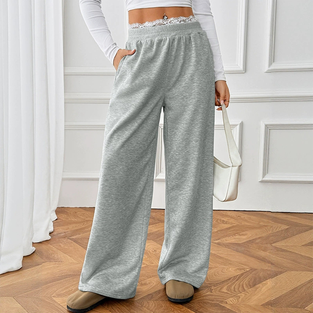 * [Trendy Design] Stylish lace trim waist with layered look adds a chic touch, making these pants stand out for casual or streetwear outfits. * [Comfort Fabric] Crafted from premium polyester blend with slight stretch, offering breathable comfort and easy movement for daily wear. * [Relaxed Fit] High waist and wide leg cut create a flattering silhouette, elongating the legs while ensuring all-day comfort. * [Easy Styling] Perfect to pair with crop tops, sweatshirts, or blouses, making it versatile for lounge, school, or weekend outings. * [Season Must-Have] Ideal for 2025 Fall casual trends, designed for U.S. TikTok fashion lovers who seek a mix of comfort and effortless style. Brand labels are not included by default. If needed, please add them via this link ($0.50/pc): https://www.faire.com/product/p_mbyt838sy8