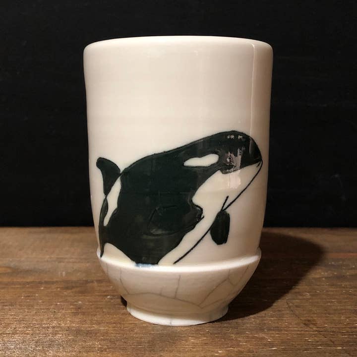 This is a handmade item; it is wheel thrown with my own glaze formulation on a porcelain clay body. Multiples can be ordered. Please make sure to note the amount ordered so you can set accurate expectations for when your order will be shipped as the product can take 4-6 weeks for production. The tumblers only come in a natural white color only. I consider a right handed mug to be a mug held in your right hand with the image facing you. A left handed mug held in your left hand would have the image facing you. Food safe, microwave safe and dishwasher safe. *When making large batches/orders, I try my best to make the work as uniform as possible to each other, but as they are made to order, the pieces can vary ever so slightly.