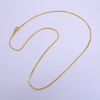 This heavy uni-sex chain is a detailed beauty. Dimpled connector styled flattened gold-filled chain is the perfect night to day chain. Size: 20" Length Material: 18/30 gold-filled Width: 3.5mm