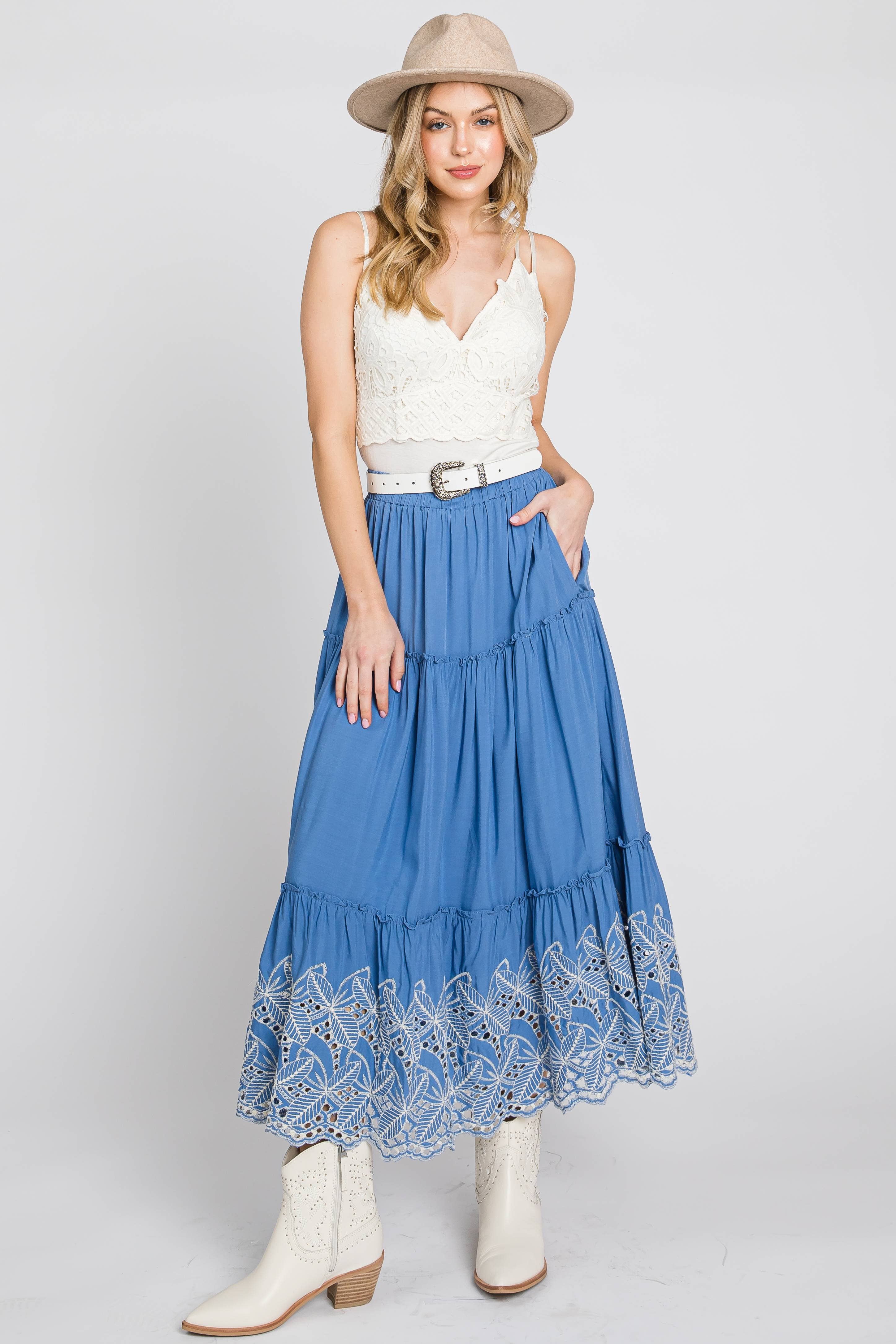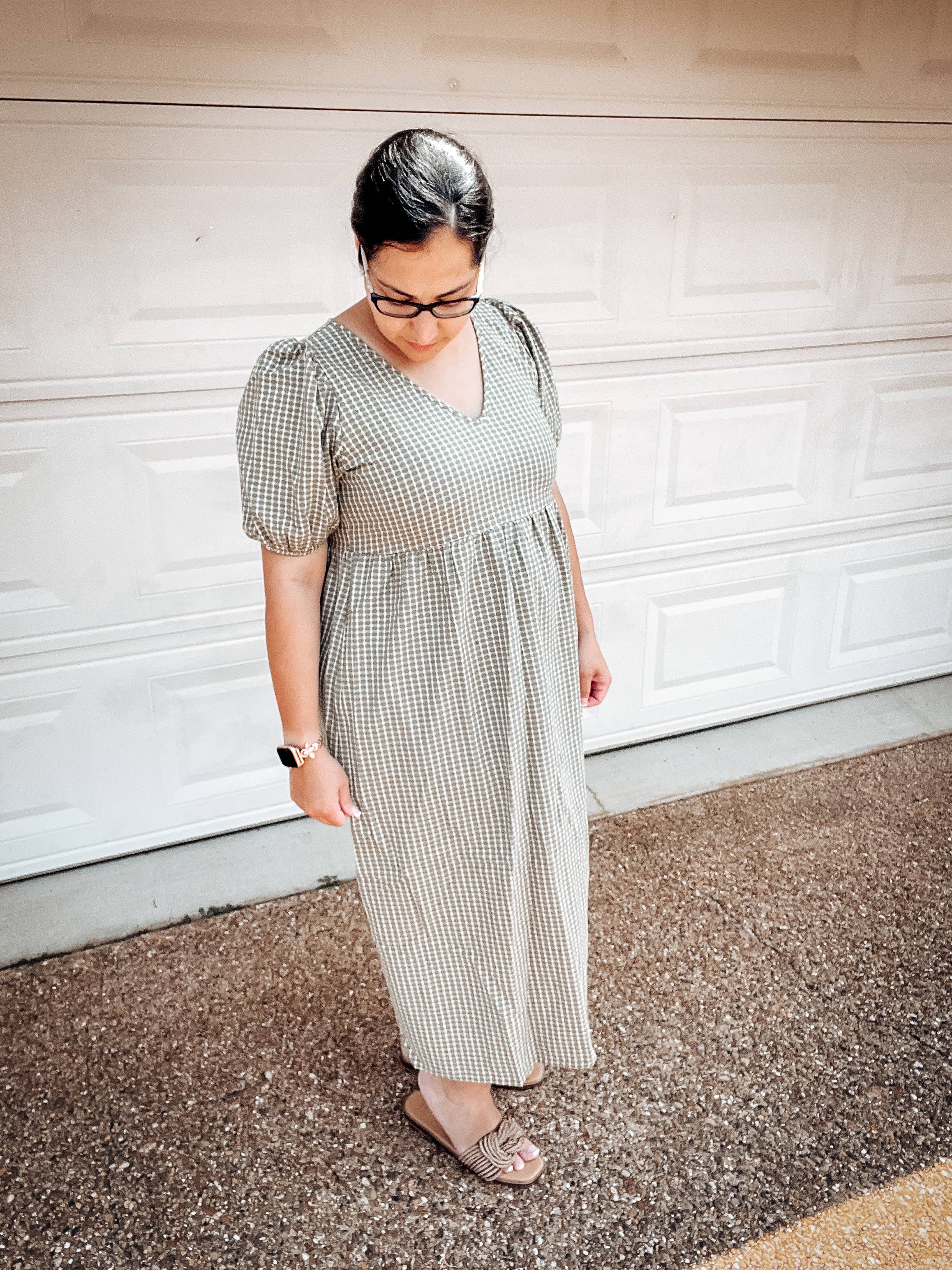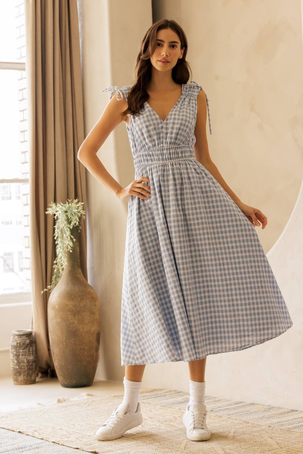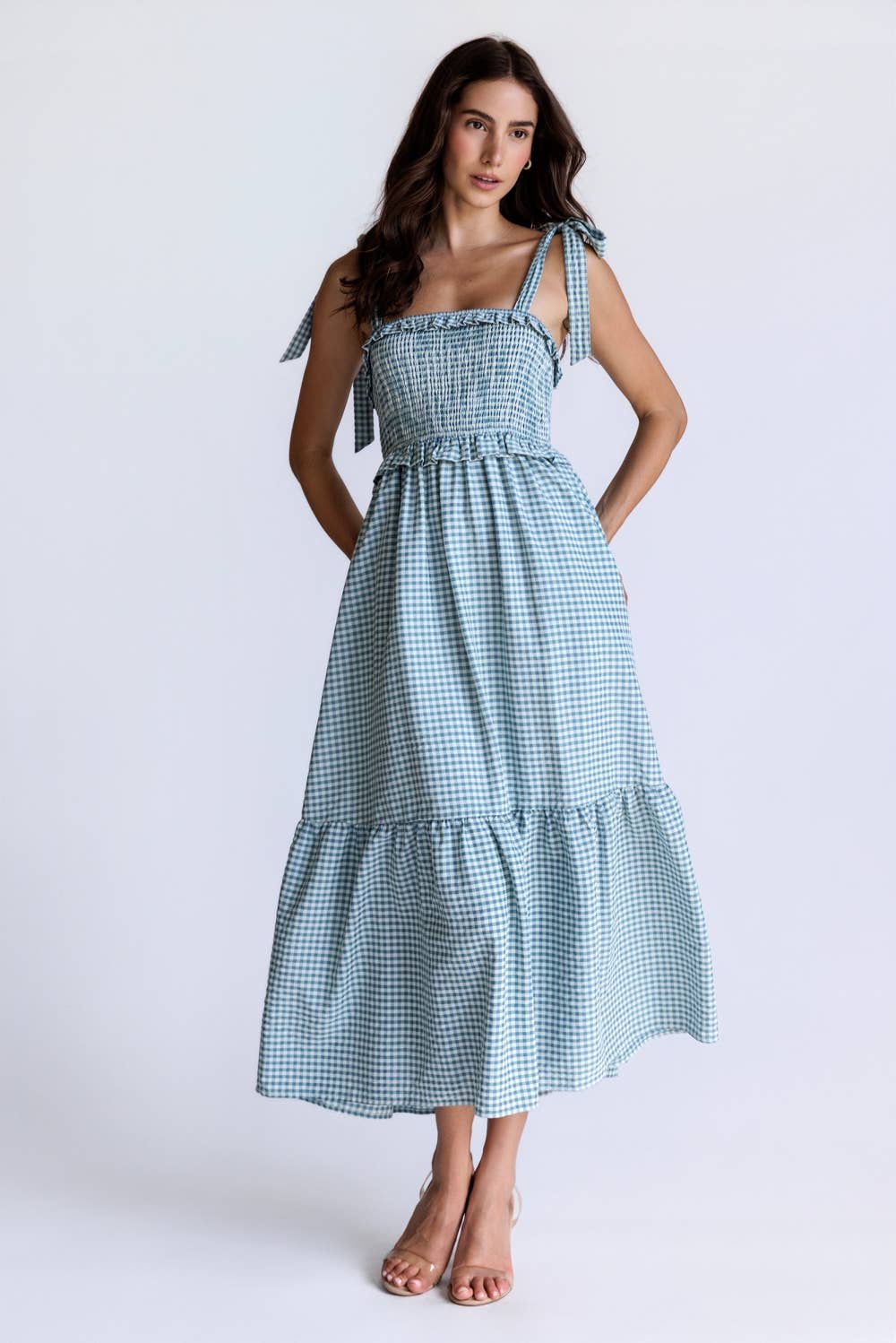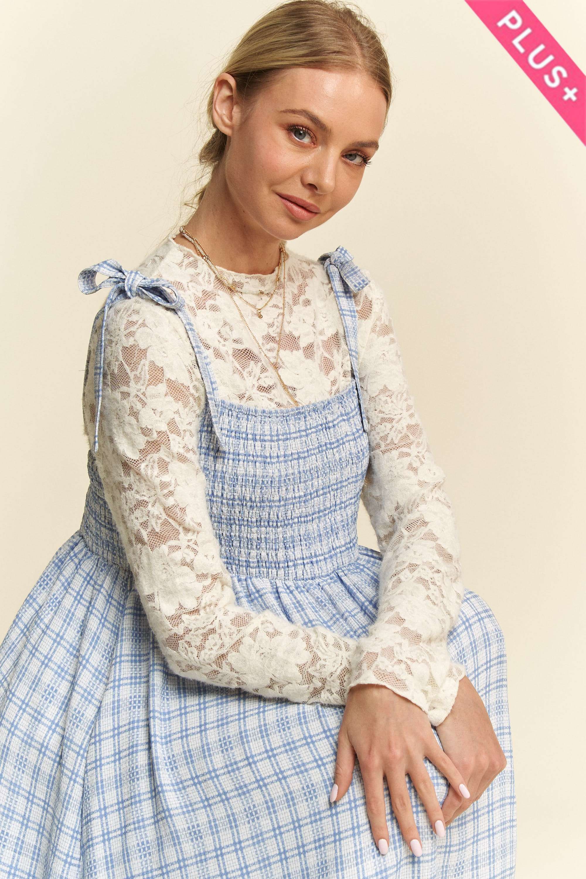 Gingham with cotton eyelet midi dress 3127D-2