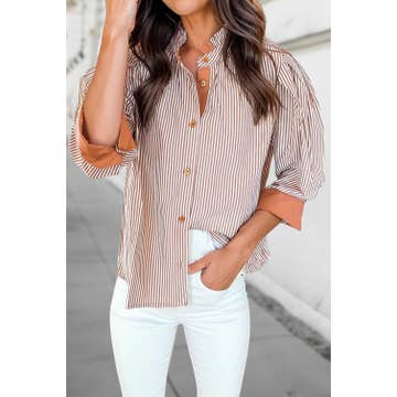 Striped Long SLeeve Mid-length Shirt TOPW1835