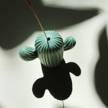 Bring a touch of desert charm to your space with our Cactus Incense Holder. Handcrafted with care, this unique piece stands at 2.6 inches tall and 2.8 inches wide, perfect for adding a whimsical touch to any room. Material: Plaster Dimensions: W 2.8 inches x H 2.6 inches Care Instructions: To clean, gently wipe with a soft, damp cloth. Avoid using harsh chemicals or abrasives. This holder is designed specifically for incense sticks only. PLEASE NOTE: Due to the pouring and molding process, our products may have small imperfections, such as bubbles. Additionally, as they are handmade in small batches, there may be slight color variations compared to the photo.