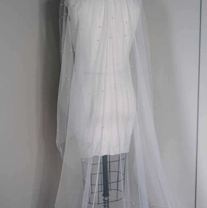 No bridal look is complete without a veil! This gorgeous Cathedral length handmade veil will be the finishing touch on your wedding day. This veil is handcrafted with pearls beautifully placed all over the tulle. Available in 2 sizes: 1.5 meters and 3 meters Colour: Off-White Wire Comb -- We know firsthand that a bride feels their best when they look their best. The importance of a simple piece, such as a veil, belt or headpiece can not go understated, and will spruce up your gorgeous wedding dress in a way that will make you feel beautiful! The moment you put on your final accessories will truly make you feel like you're ready to start the beginning of your love story.