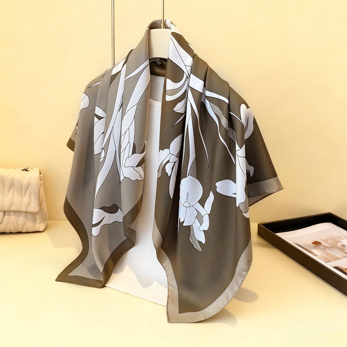 The silk scarves are absolutely gorgeous! The colors, print, style, everything. Very chic!