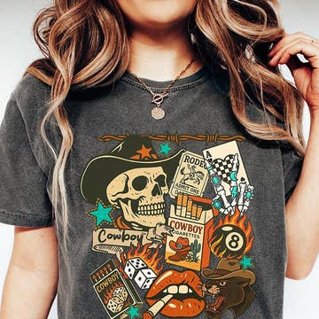 50% cotton, 50% polyester, unisex fit, short sleeve, We offer sizes S-2x. Cowboy Killers Western Graphic T-shirt! Featuring our Gildan relaxed tee with a DTF transfer this shirt is designed for max comfort!