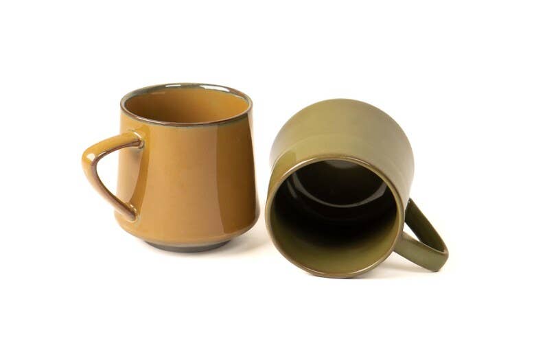A beautifully crafted mug with subtle reference to Japanese design will suit just about any kitchen aesthetic wonderfully. Mid-century modern to farmhouse, the rustic yet modern wood handle will make this mug the highlight of your morning coffee routine. Perfect for an Air BnB coffee bar or if you often serve coffee to guests... they will demand to know where you go it! Extremely comfortable and ergonomic. I find myself reaching for this mug more than any other as the handle is easier to hold than the traditional ear shaped handle. The handle is attached very well and will not come off unless dropped or similarly struck. Glaze will vary slightly by nature. Hand made and fired in small batches. -Dimensions- Height: 4 inches Diameter: 3.25 inches Handle Length: 3 inches