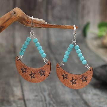 Wholesale Earrings, Half round moon and stars, USA, fired pottery