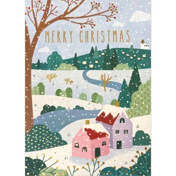 Send a little small-town charm with the Holiday Village Christmas Greeting Card. Featuring a hand-painted snowy village scene full of cheerful shops, twinkling lights, and bundled-up shoppers, this card brings the magic of the season to life. The festive “Beginning to look a lot like Christmas” message adds a nostalgic touch that’s perfect for spreading joy. Great for friends, family, coworkers, or anyone who loves the cozy feel of the holidays. A merry way to celebrate the most wonderful time of the year! Format | A2, 4.25×5.5" Interior | Blank Foil | Gold Envelope | Envelope color may be either kraft or beach. Sentiment | Beginning to look at lot like Christmas