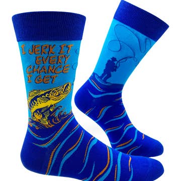 **Product comes packaged half length, unless requested otherwise** You'd rather be fishing! You don’t have to tell your boss, let your socks do the talking. The geometric fishing lures pattern blends right into the office in stylish colors that’ll have you looking sharp for any situation. These socks sport a funny message on the cuff: “I’d Rather be Fishing.” Made from a luxurious knit cotton that will keep your feet cool and comfortable all day long. Try them on and you’ll be hooked! It's a perfect gift for fishing enthusiasts, Dads, Grandfathers, as a gag gift for your boss, white elephant gift exchanges and more.