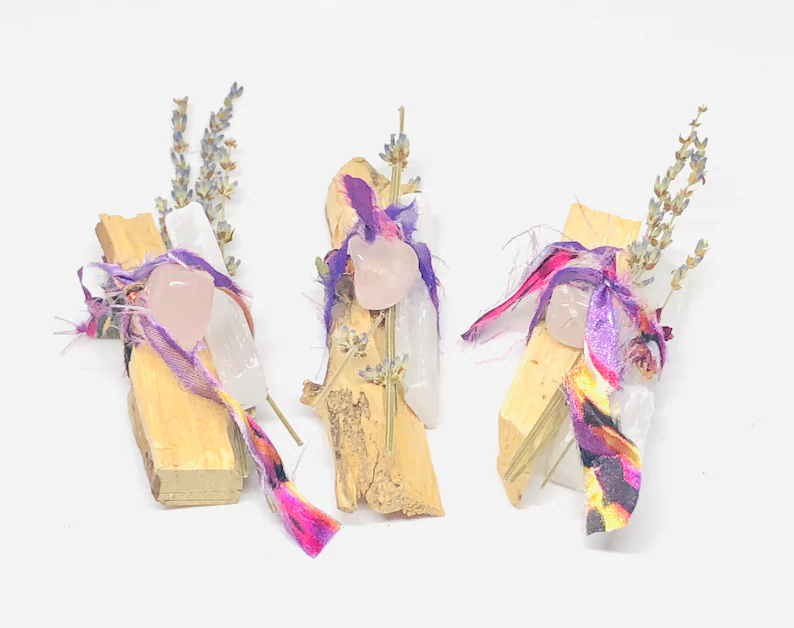 Blue sage brings health, prosperity and healing while cleansing negative energy surrounding you. Handmade with loving intention. D E T A I L S : -Organic Colorado Blue Sage (or a mixture of silver/prairie/blue sage depending on availability) -Roses (colors may vary) -Babies Breath -Lavender -Assorted Flowers (colors may vary) -Wrapped in Cotton Twine -Energy Cleansing -Approximately 9” *PLEASE NOTE SINCE THIS IS A HAND-MADE ITEM IT WILL VARY FROM BUNDLE TO BUNDLE BUT WE WILL DO OUR BEST TO KEEP IT AS SIMILAR TO THE PHOTOS AS POSSIBLE- COLORS MAY VARY*