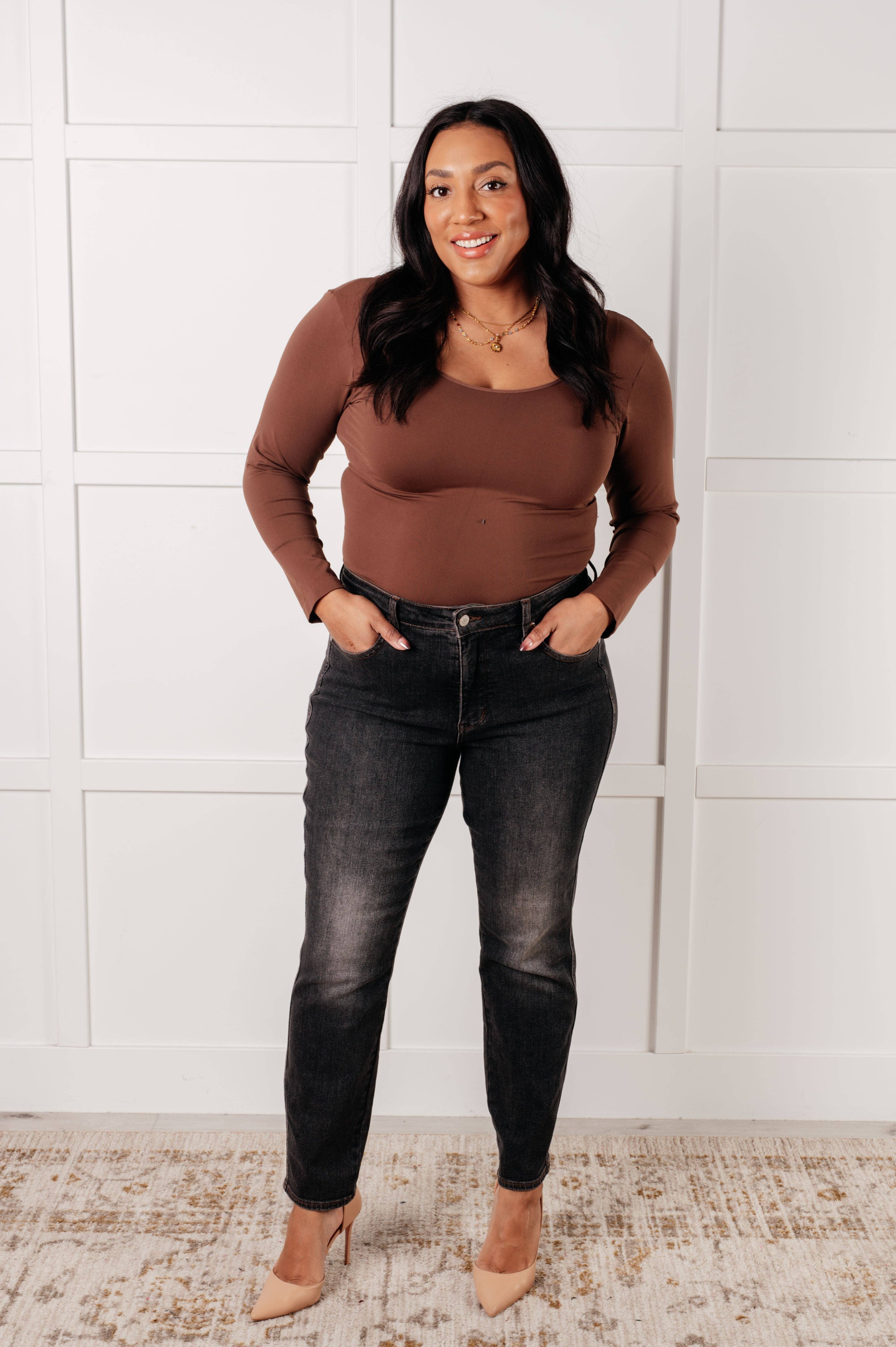 Get ready to rock stylishly with Judy Blue High Rise Jeans! These wide leg crop jeans feature a coordinating button fly and a washed out black garment dye for a cool, edgy look. With a high rise and raw hem, you'll stand out in the best way possible. * Judy Blue * High Rise * Button Fly * Garment Dyed * Wide Leg Crop * Raw Hem * 69% Cotton, 23% Poly, 7% Rayon, 1% Spandex * True to Judy Blue Sizing Models are wearing sizes 0 and 14W