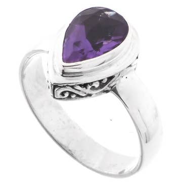 Amethyst Sterling Silver Ring - Mini Dome Design