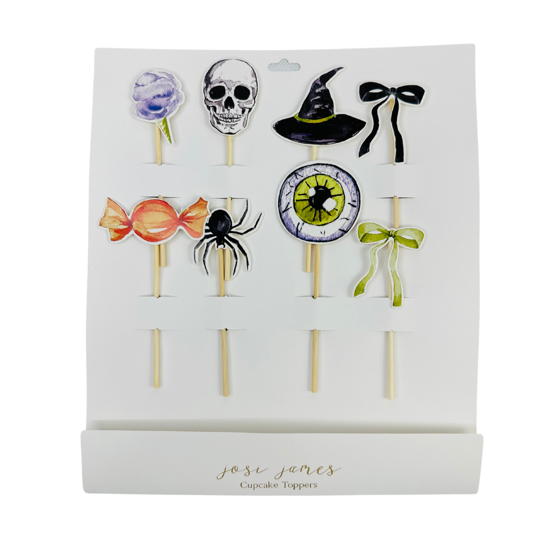 Adorable watercolor halloween patterned plates, bows, skeletons, witches hats, spiders and more! Size: 8.5 Inch 12 Plates 6 Purple Trimmed Plates, 6 Chartreuse Trimmed Plates Per Pack