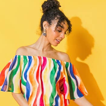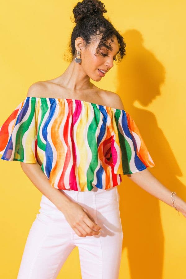 Off Shoulder Ruffle Mexican Top Made Of Stretch Fabric