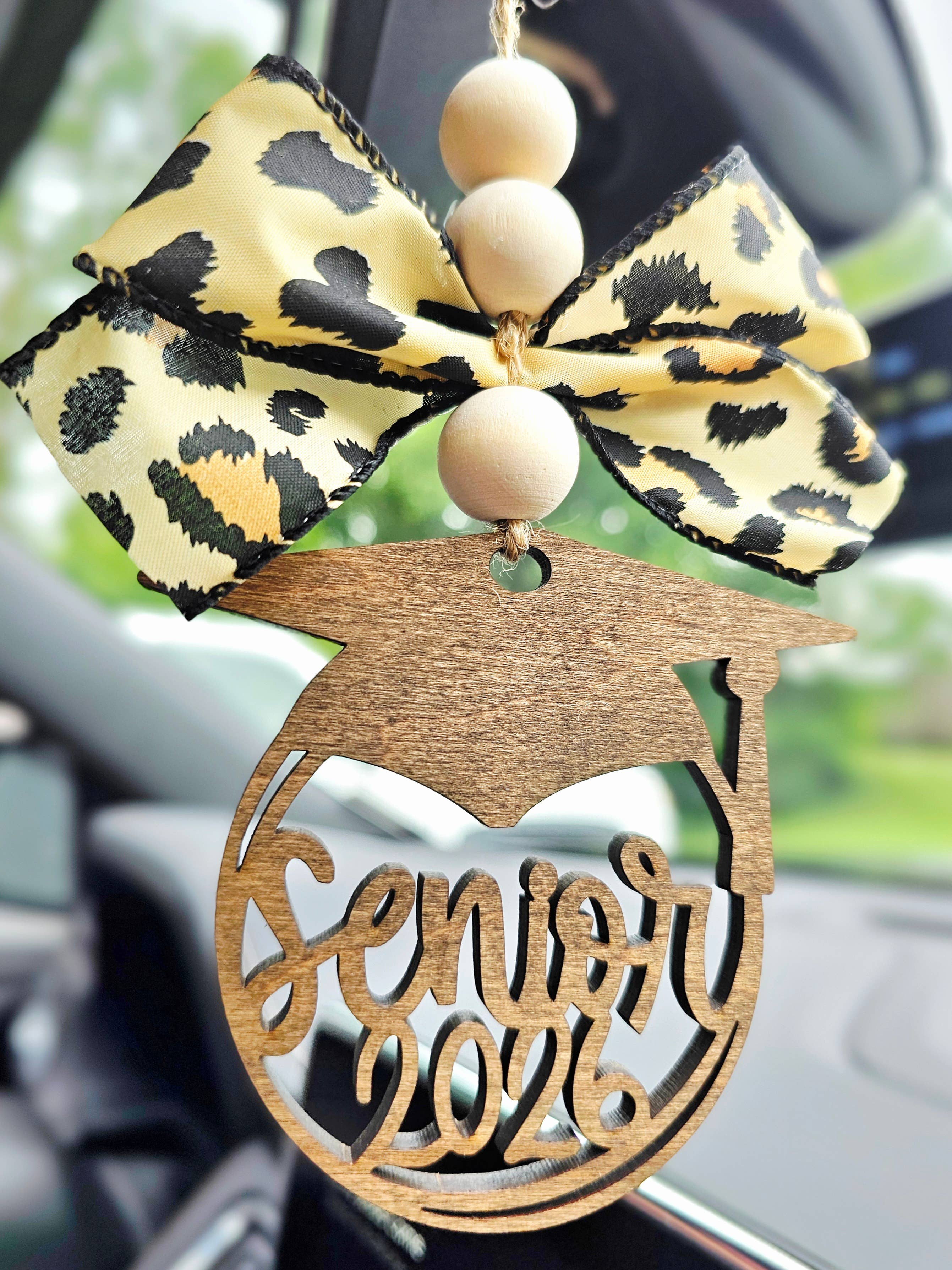 This beautiful car charm hangs from your rear-view mirror. It is an eye-catching statement piece that shows off your style to all who see your car. Essential oils can be added to the three natural wood beads at the top. These also look gorgeous as bag charms, and tree ornaments! The charm is cut from sturdy 1/4” thick wood. We then hand stain, string, bow, and bead each charm. Next, we individually bag and label each completed charm for a nice and neat packaged product. Our goal is to always provide a quality product with a quick turn around time (usually 1-3 days) so you and your customers can get to enjoy your product sooner rather than later!