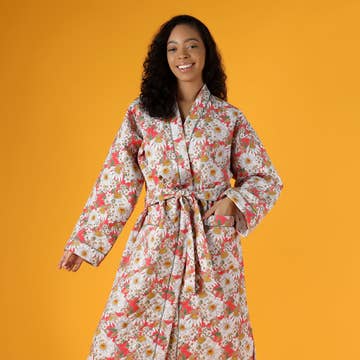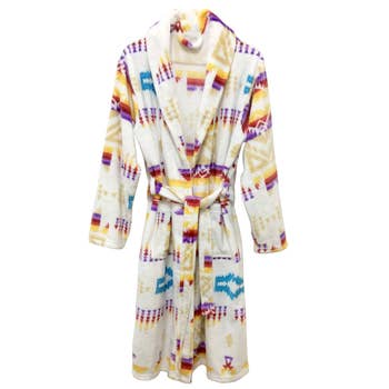 Wrap yourself in the warmth and comfort of our Nativo plush robe. Featuring a unique Southwest design, this cream-colored robe is a perfect blend of style and coziness. Ideal for lounging or after a bath, it adds a touch of New Mexico charm to your sleepwear collection. Experience the fusion of tradition and comfort with Nativo.