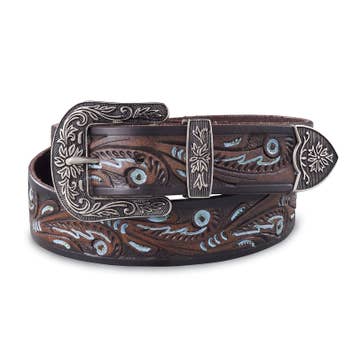 Genuine Suede Leather Belt w. Western Floral Buckle