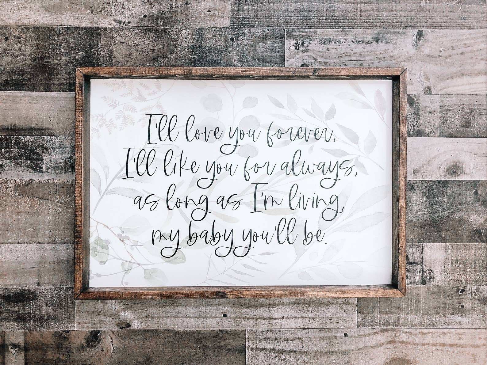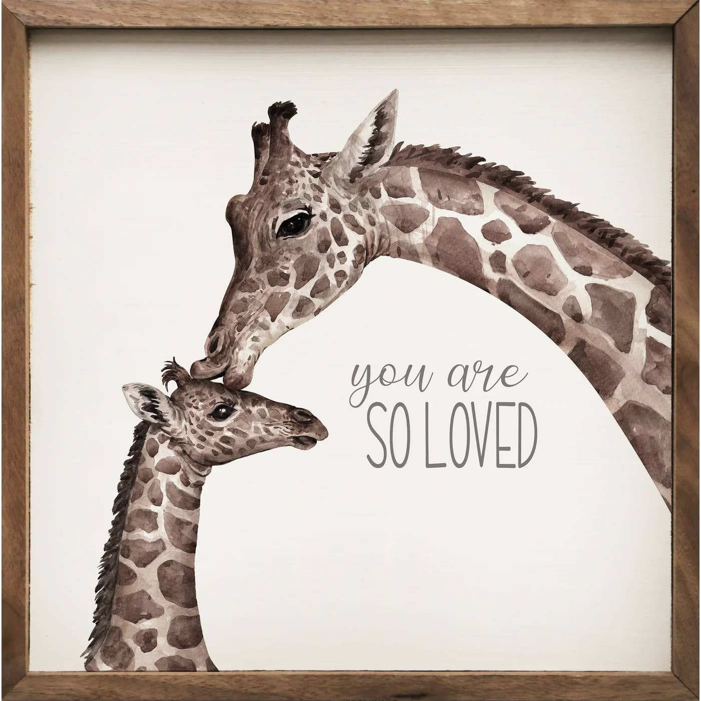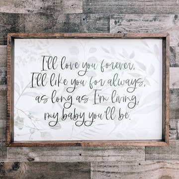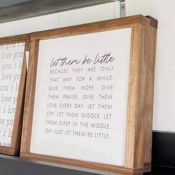 This charming art print features a delightful illustration of cute and friendly jungle animals with the greeting "Hello Little One." The colorful and whimsical design is sure to captivate the imagination and spark a sense of wonder in young minds. • Printed with high resolution archival giclee inks • Fine art cotton canvas mounted on wood • Solid hardwood frame in shown stain colors • Sustainable American oak or alder wood • Made in the USA in our Utah studio • MINI 6" tall x 6" wide x 1.25" deep w/ 1/4" thick frame • SMALL 11" tall x 11" wide x 1.25" deep w/ 1/4" thick frame • MEDIUM 15" tall x 15" wide x 1.5" deep w/ 3/4" thick frame • LARGE 20" tall x 20" wide x 1.5" deep w/ 3/4" thick frame • Signs may have +/-1" variations • All signs can stand on a shelf or table (Medium & Large can also hang on a wall) • Farmhouse style frames have small rustic imperfections that make them unique