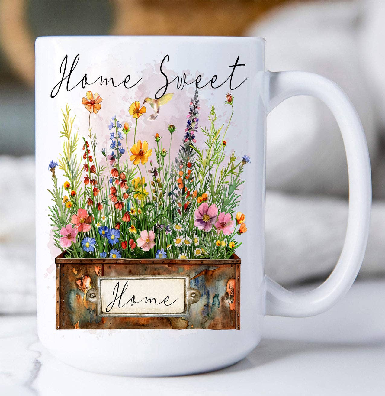 These 15oz high quality custom mugs feature Angie's vibrant floral designs. Our coffee mugs are made with study walls for safe and durable use. They're the perfect addition to every kitchen and desk. Due to the handmade nature of these products, there could be slight variences to the colors. •Microwave and dishwasher safe •Lead-free •Dimensions: 10"Wx3.30”Dx4.75”H