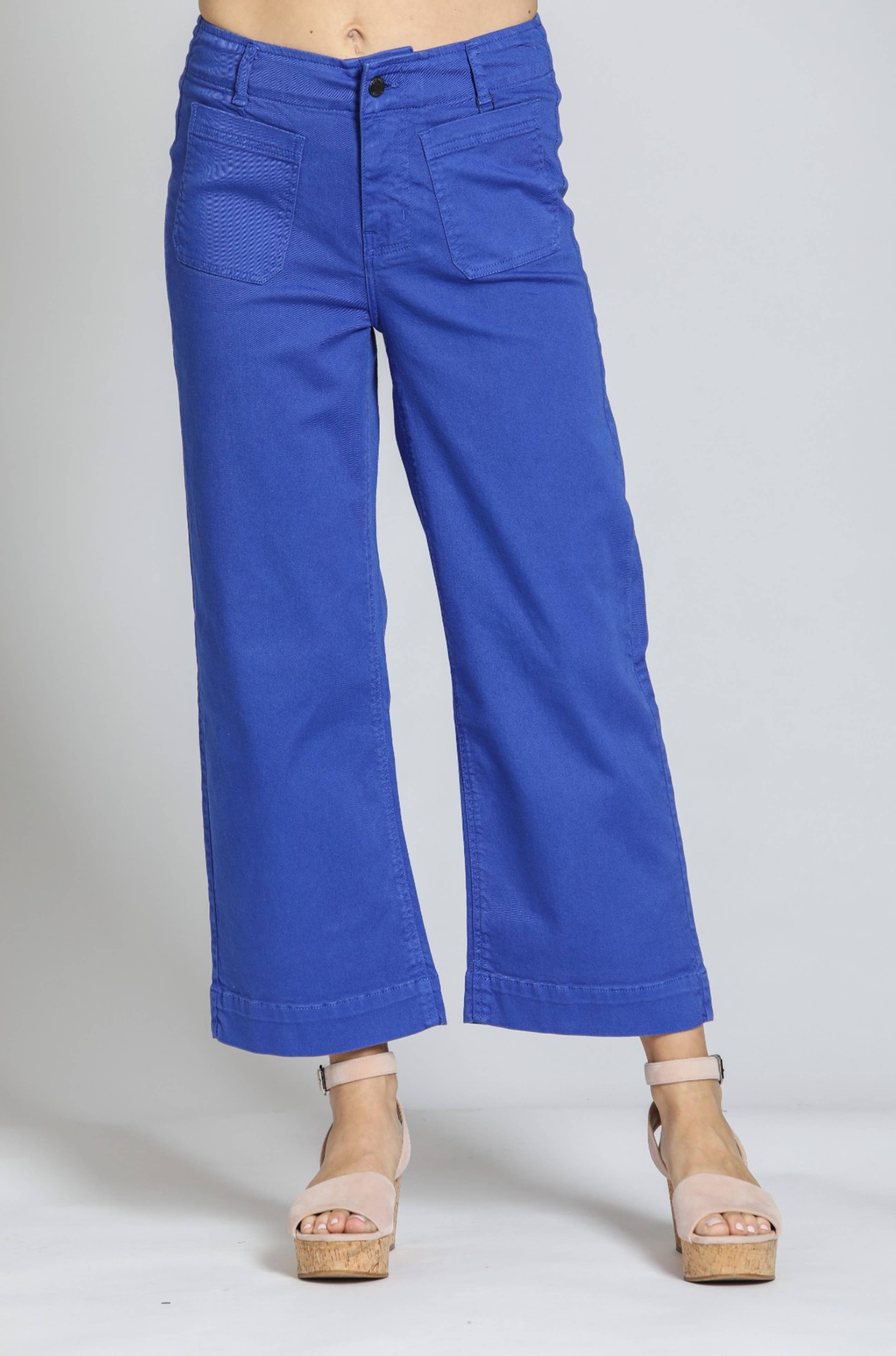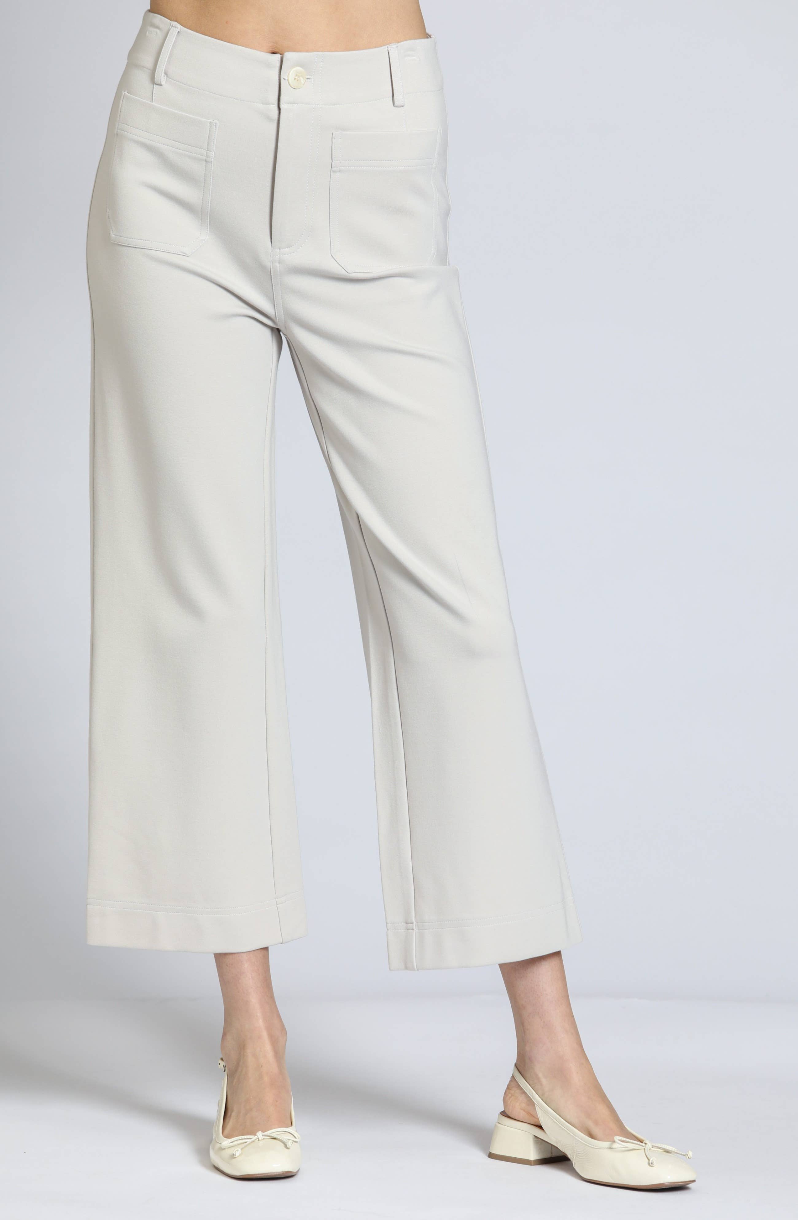 Wholesale Ponte Cropped Wide Leg Pant With Patch Pocket - BLACK