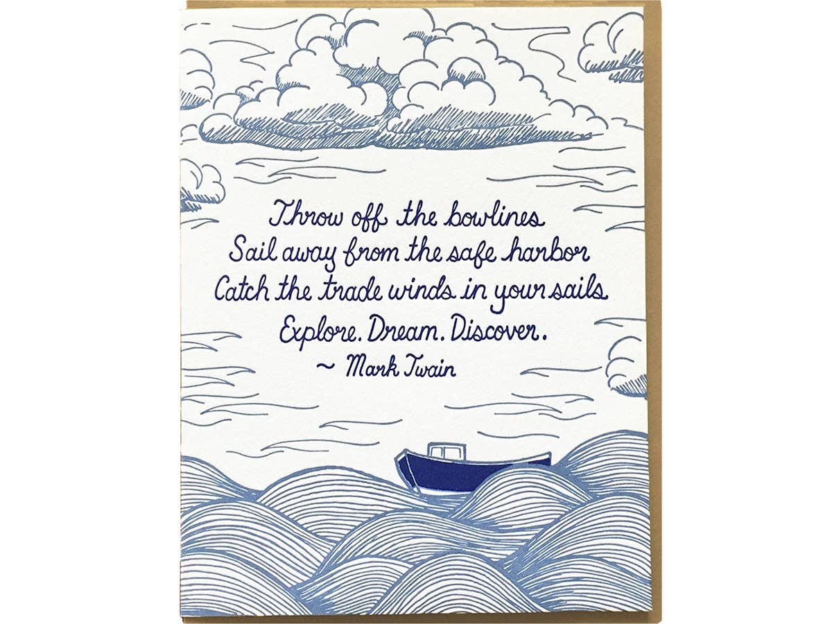 Missed The Boat is hand illustrated, digitally printed with lots of care on natural white cover stock. Blank interior + matching envelope. Individually packaged. A2 (4.25 x 5.5)
