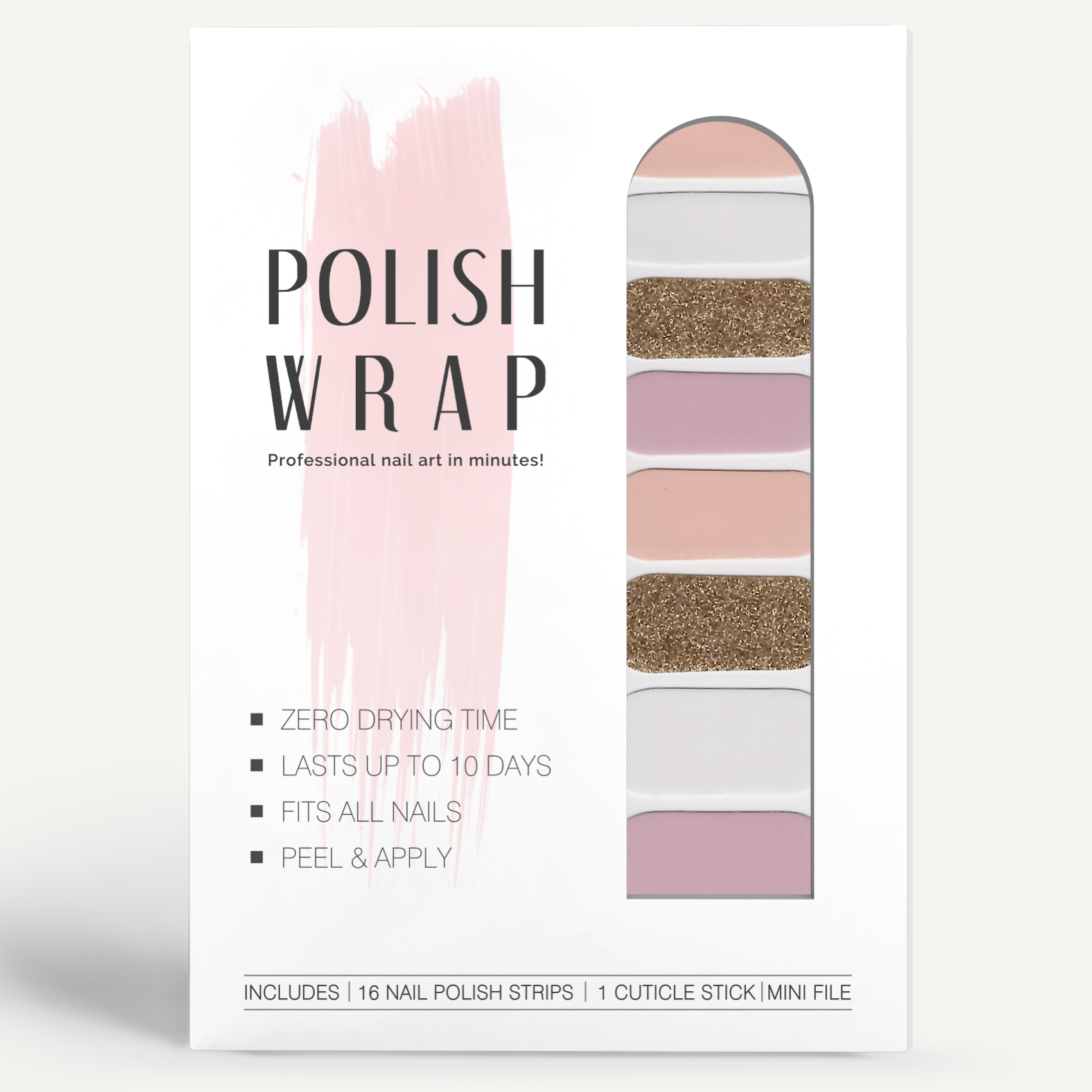 Our Powder Pink Nail Wrap Set features a solid set of delicate light pink. This neutral, versatile set is one of our best selling colors and is easy to wear with any outfit! Ivy & Ash nail art is inspired by and created for the modern woman who wants trendy nails for a great price, without the fuss of dry-time, chipping, and smudging. Our nail wraps are non-toxic, vegan, cruelty free, and long-lasting. Level up your nails from the comfort of your own home with our quick, easy to apply DIY nail wrap sets. DETAILS -Each set comes with 20 double-ended nail polish strips -Easy to follow application instructions included on the packaging -Self-adhesive strips, no heat or UV light required -Lasts up to 2 weeks -Non-toxic, made of real nail polish ingredients -Packaging includes round hole hang tab for easy display -UPC barcode on back of package -Perfect price point & size for POS display impulse purchases -Great option for under $20 gift items
