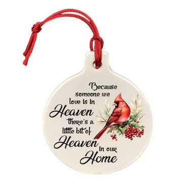 Modern and unique designs, HANDMADE in Canada, these gloss ceramic ornaments make the perfect gift for anyone in your life. Features Good quality, porcelain round, approximately 3.5" diameter, 3/8 thickness. This is a gloss white ceramic ornament. Included is a small red cord for hanging. The back of the ornament is white and can be personalized by you with a paint pen or a permanent marker. Personalize with a date, the year or a message to a friend. Made in Canada with imported materials.