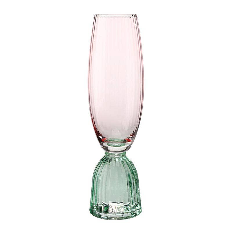 It's easy to add charm, color, and dimension to any table setting with these chic clear pressed glass flutes. The unique stemware can be used for champagne, wine, signature cocktails, or water but their uses aren’t limited to drinking glasses. They can also be used as charming mini vases to complement your vintage décor. Our inexpensive clear flutes make a smashing statement for your wedding or bridal shower and can be complemented with additional colors from our selection for a color scheme that suits your style. Available at a cheap price, these short stemmed antique style of glass flutes feature an elaborate pressed glass pattern with flared base for a classic look. 7 7/8" (H) x 2 2/7" (Dia.) Glass Also available in smokey grey or blush pink Holds up to 6oz