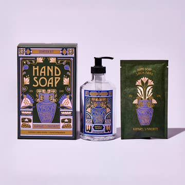 Experience a moment of indulgence for yourself with our luxury liquid hand soap. Sparkling top notes of Italian lemon, peach skin and green apple intertwine with warm amber woods and tonka beans, centered by an aromatic heart of sage, verbena and French lavender. The experience is complete with our statement refillable glass bottle. Starter kit includes: 1x 335ml/11.3 Fl.oz empty refillable glass hand soap dispenser 1 hand soap tablet pouch (1 pouch = 335ml liquid hand soap)