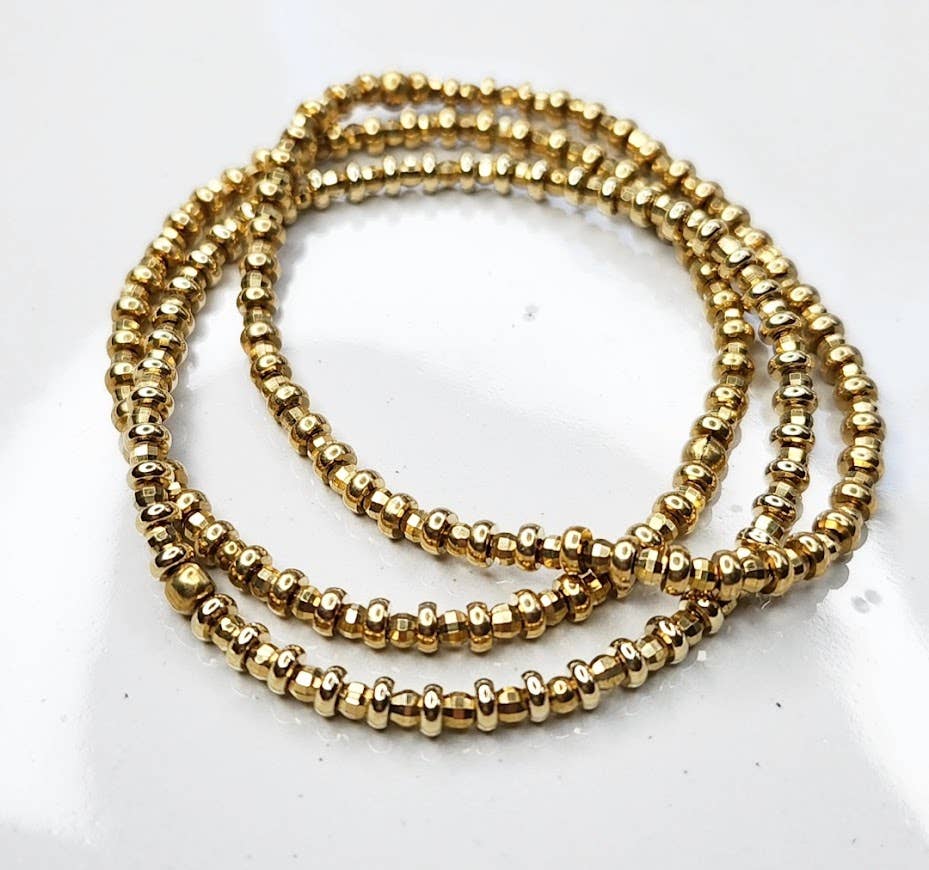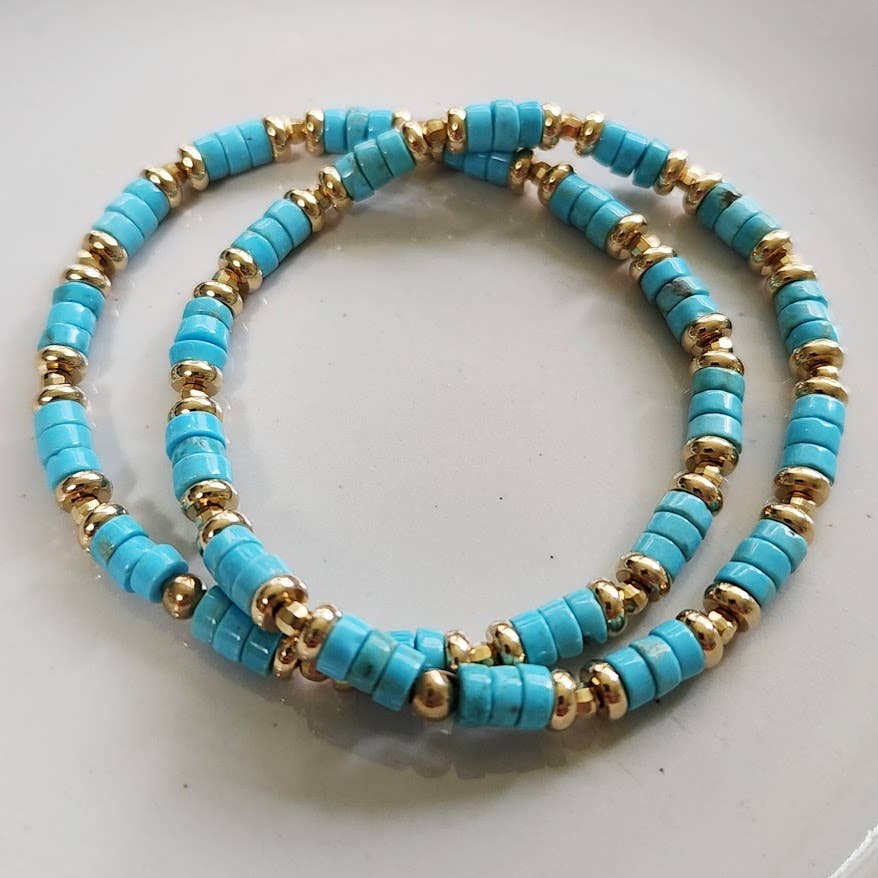 Here in these beaded stretch bracelets, natural 8mm round pink morganite, blue, green and yellow shades of beryl create a beautiful pastel rainbow and are paired with simple brass roundelles to make these bracelets super stackable! Each bracelet will have their own unique combination of stones and measure 7" long with an inner diameter of 6.5". Natural pink Morganite is a type of beryl, which is the gemstone family that includes aquamarine and emerald. Morganite is actually named for J.P. Morgan and occurs in shades of pink and orange/salmon. Morganite is strongly associated with love, romance, and compassion, as well as emotional healing, promoting feelings of peace, confidence, and inner strength, making it a Heart Chakra stone.