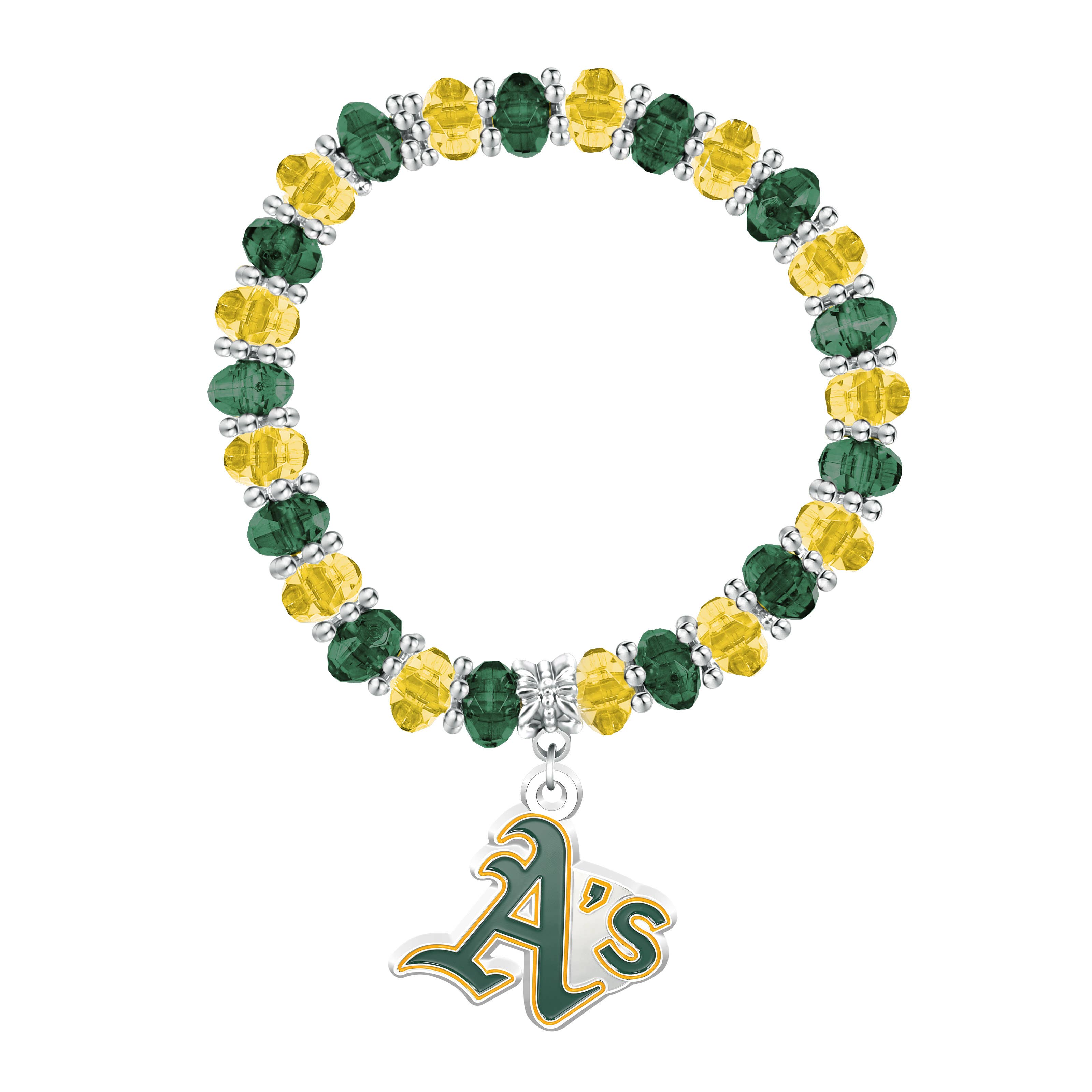 This Two-Tone Beaded Bangle Bracelet features two-tone beads and a team logo charm that lend eye-catching style to this stunning bracelet. It has a comfortable fit without compromising style or fashion. Combine other bangles and bracelets on one wrist for a fashionable and sleek look.