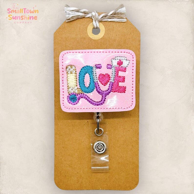 Mint & Pink Stethoscope Heart Badge Reel