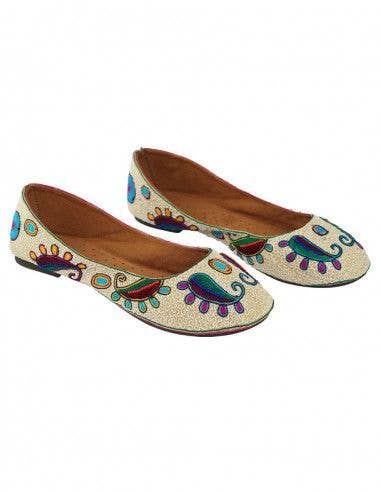 Light blue ballerina with embroidered drawings and stone aggregates that highlight the drawings Inside they are made of leather and the sole is made of rubber Available in sizes 36 to 41 Kimago Bohemian clothing, boho dresses, hippie chic pants, ethnic ponchos, women's jumpsuits, cotton jackets and a wide variety of ethnic bags, hippie shoulder bags, hemp backpacks, cases and purses Handmade decorative products, table runners, tapestries, statues of Hindu gods, incense holders Ethnic costume jewelry, boho earrings, necklaces from India, bracelets made with mineralsm, bone necklaces, crystal pendants and mineral pendants Tibetan bowls, mineral pendulums, amethyst, rose quartz, tiger's eye, 7 chakras, Tibetan flags, incense, quartz crystal obelisks
