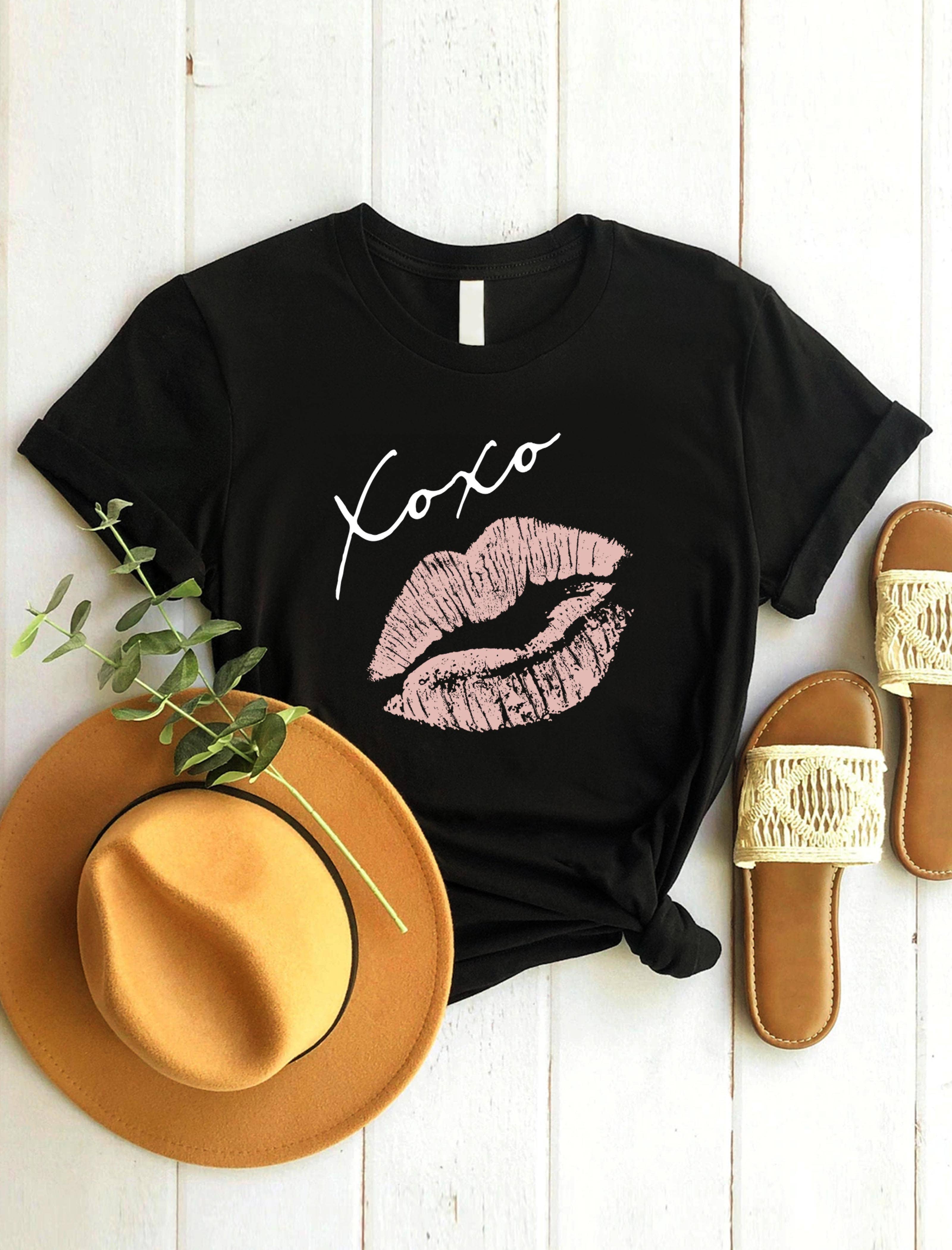 XOXO Red Sparkly Lips,Valentine, Graphic Printed Unisex Short Sleeve V Neck T-Shirt Made to Order