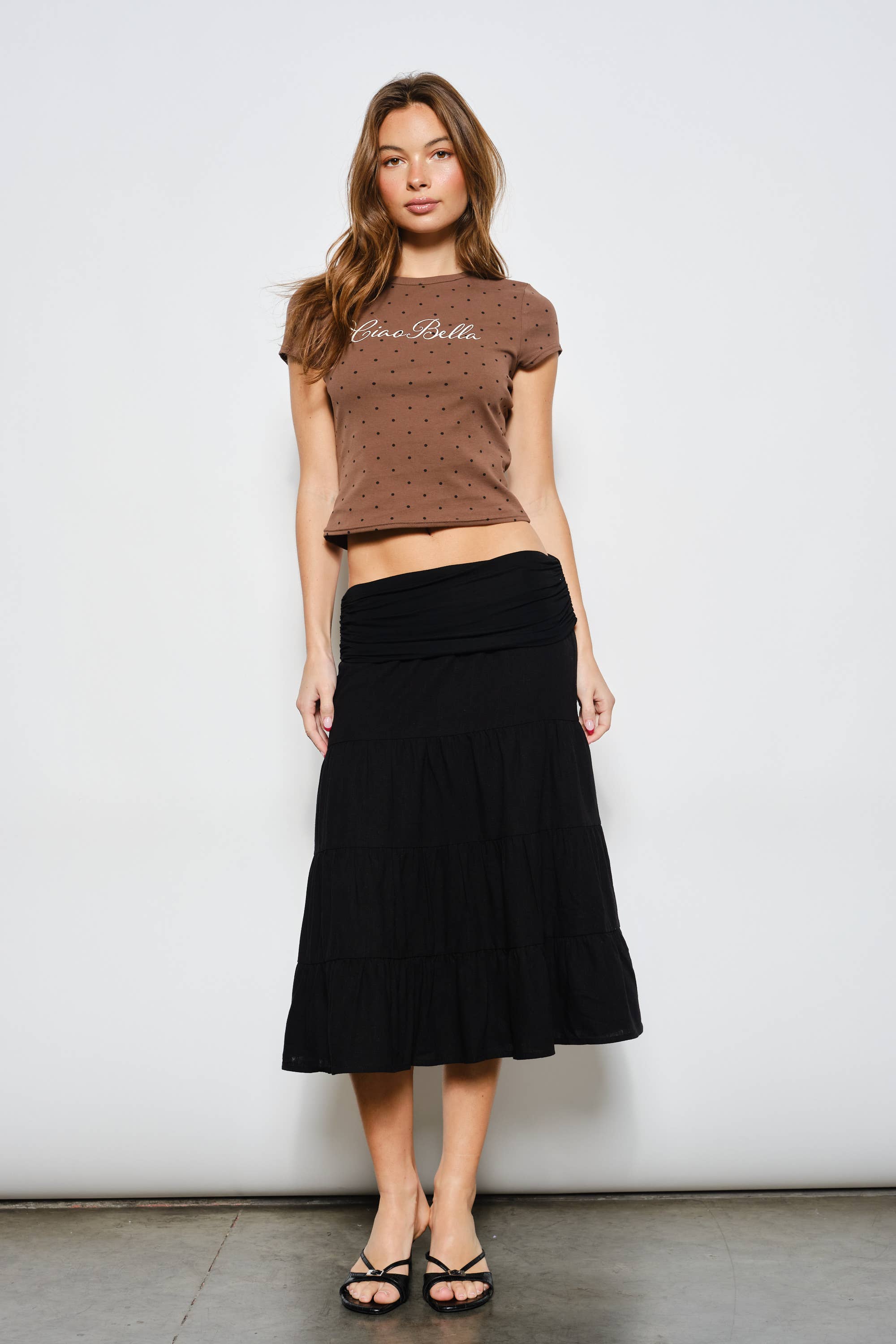 This high wasist mini skirt has a classic fit and an A-line cut.