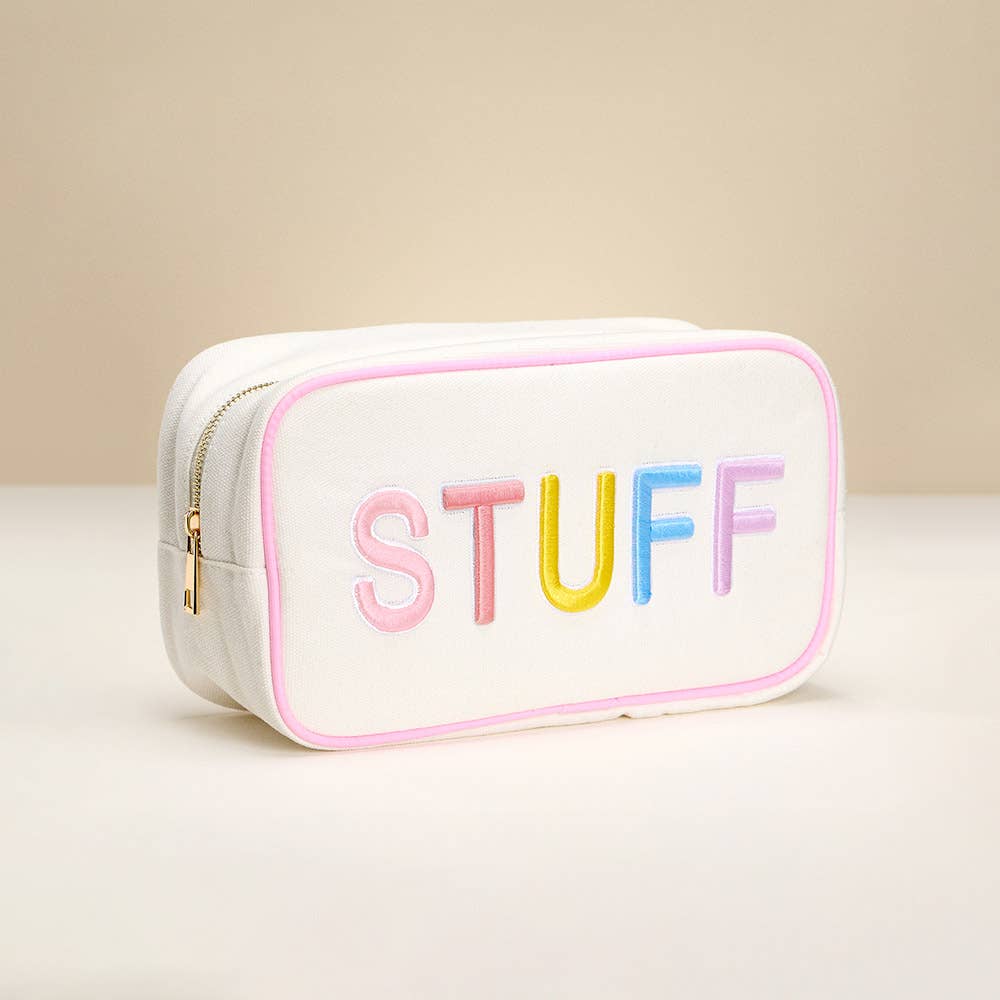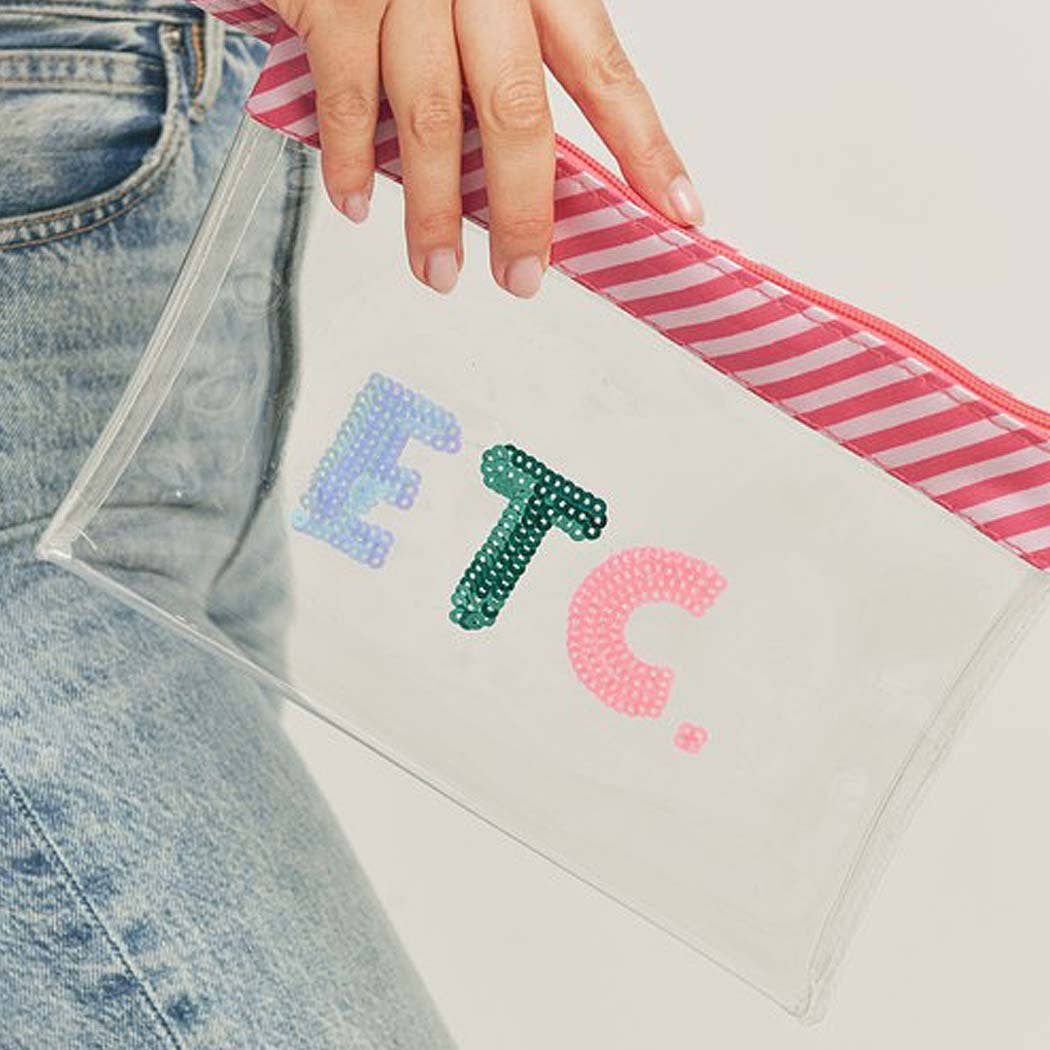 Pool Message Transparent Pouch Bag / Organizer • Size : 10.8" X 8" X 5" • Zipper Closure • Material : 100% PVC / Side - 100% Polyester Fun and functional clear pouch featuring bold glitter lettering. Ideal for carrying poolside essentials, toiletries, or travel items. Water-resistant and stylish for on-the-go storage.